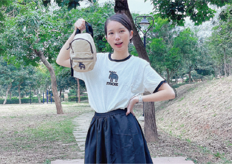 可愛的帆布包x駝鹿logo,搭配火紅的moz短T,服飾採用100%純棉帆布材質,質感非常好,車縫也很精密,整天心情都好好啊^^