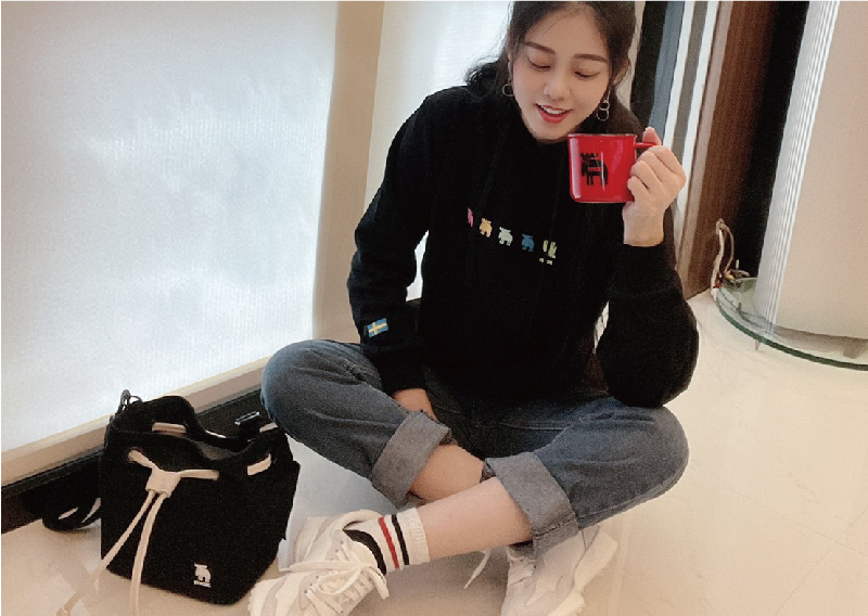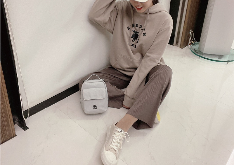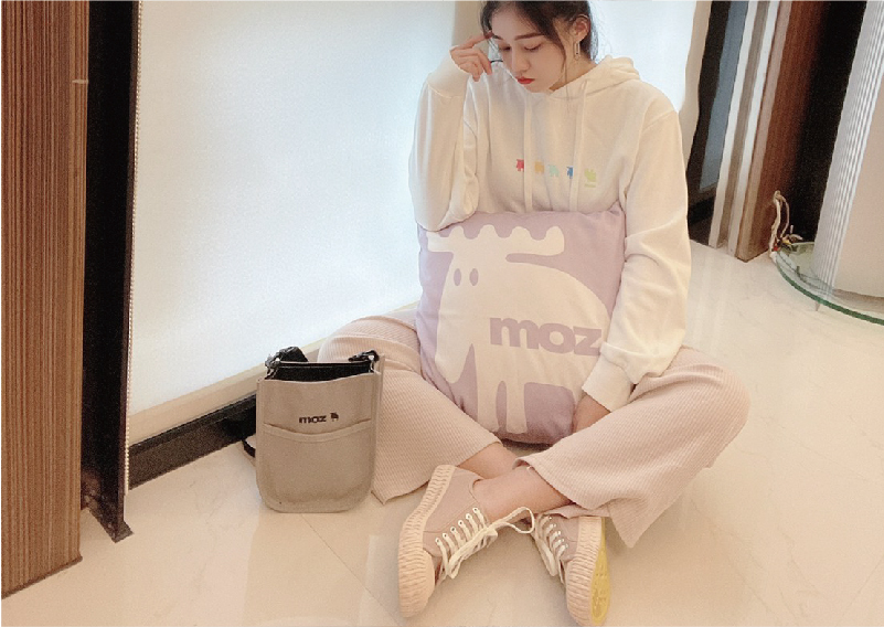 風和日麗的午後,穿上漂亮的針織衫、麂皮短褲、老爹鞋,最後背上moz瑞典駝鹿小方糖口袋水桶包,用淺淺的色調來襯托包包,做出boyish感~很喜歡這個風格,甜甜的,很可愛。