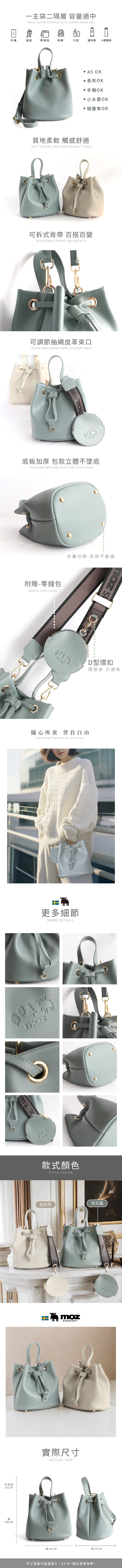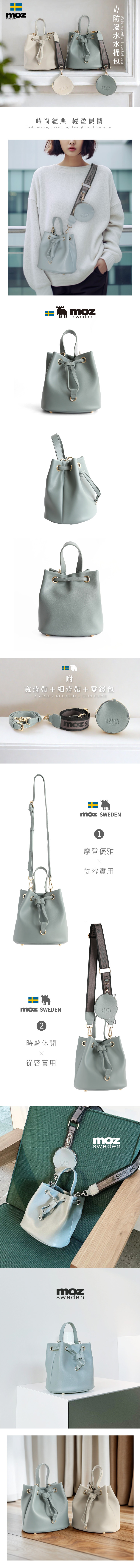 moz瑞典駝鹿 皮革 防潑水 水桶包(松石藍)