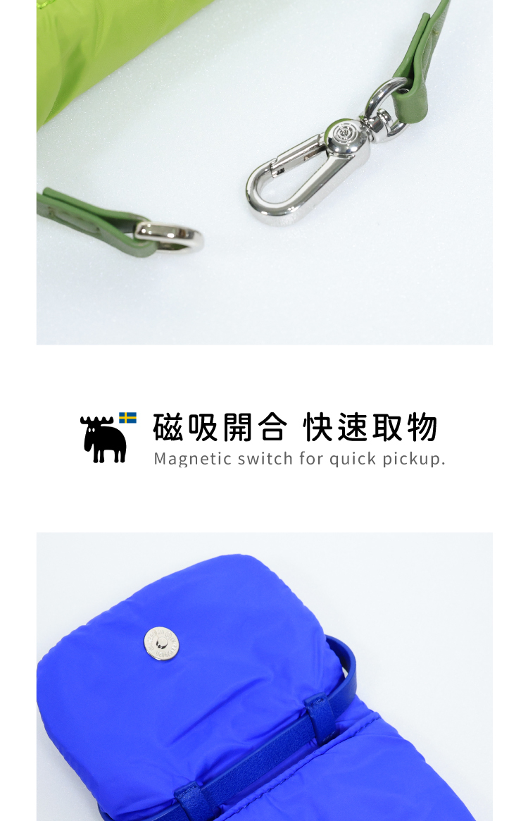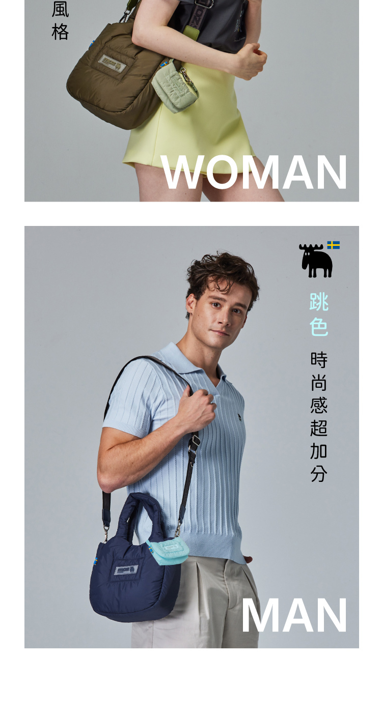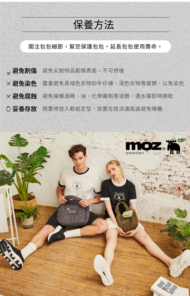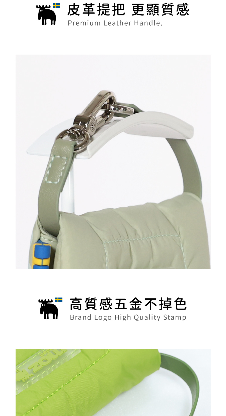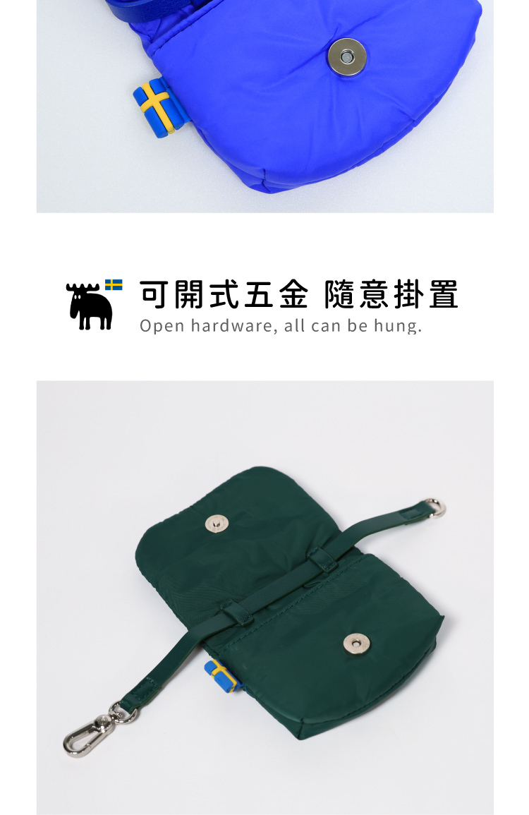 moz駝鹿Logo與瑞典國旗膠章,小包也能展現品牌風格與北歐設計感。