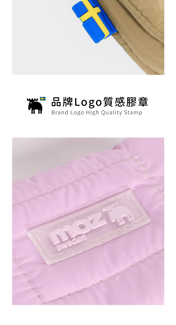 moz瑞典駝鹿LOGO與瑞典國旗膠章,展現品牌美學,增添整體質感。
