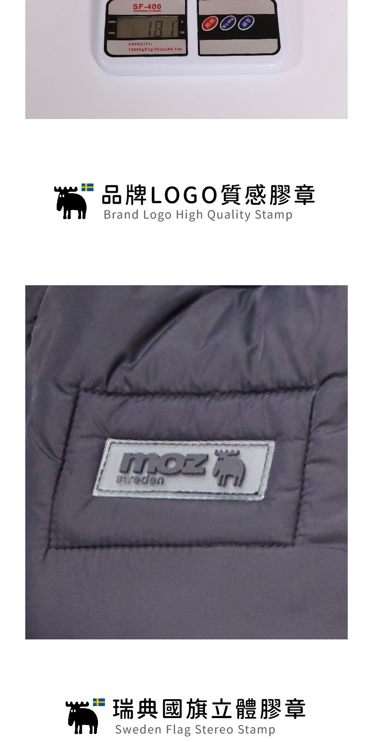 瑞典駝鹿LOGO與瑞典國旗膠章,展現品牌美學,增添整體質感。