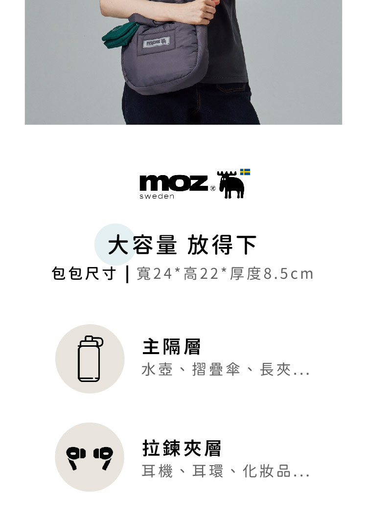 moz瑞典 駝鹿 Light 空氣 雲朵包(深灰)中