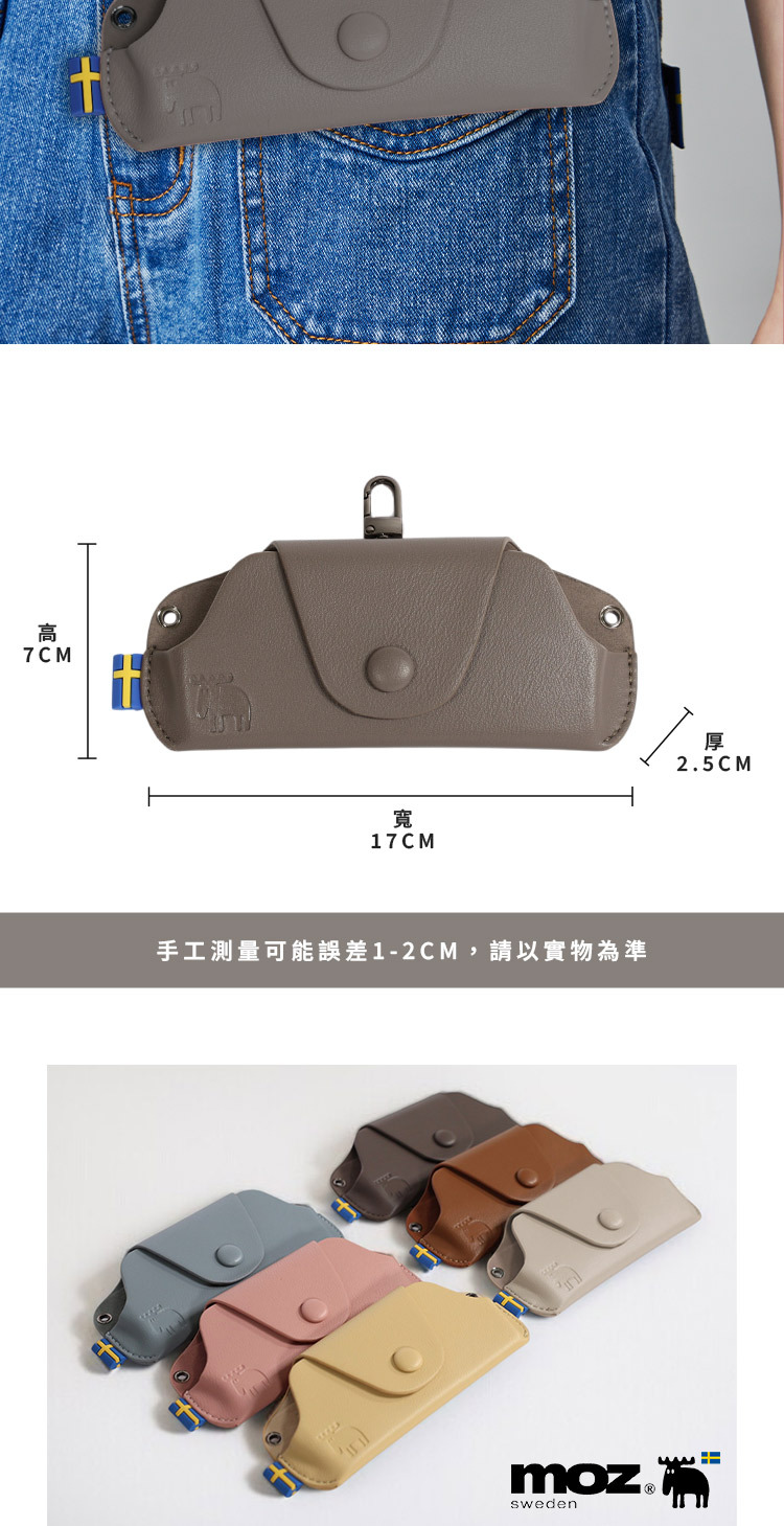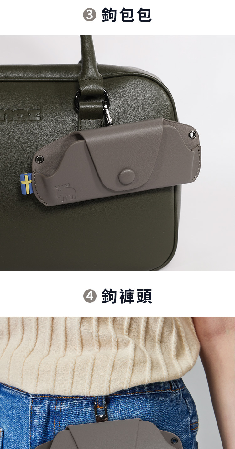 | A:moz 眼鏡包是一款結合北歐設計感與日常實用性的收納配件,嚴選防潑水皮革材質,搭配磁扣開合與金屬掛勾設計,既能保護眼鏡,也能隨身攜帶,質感與便利兼具。 |