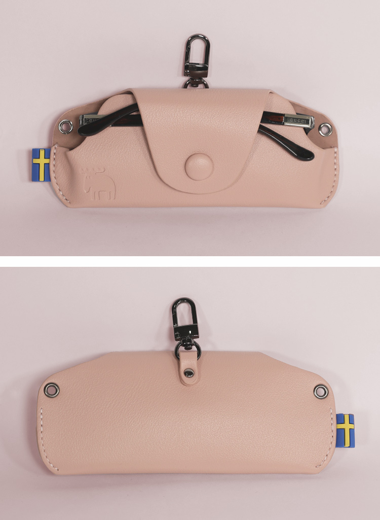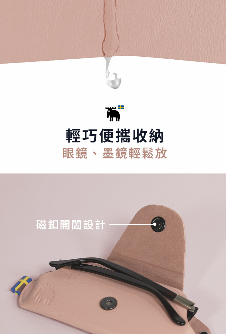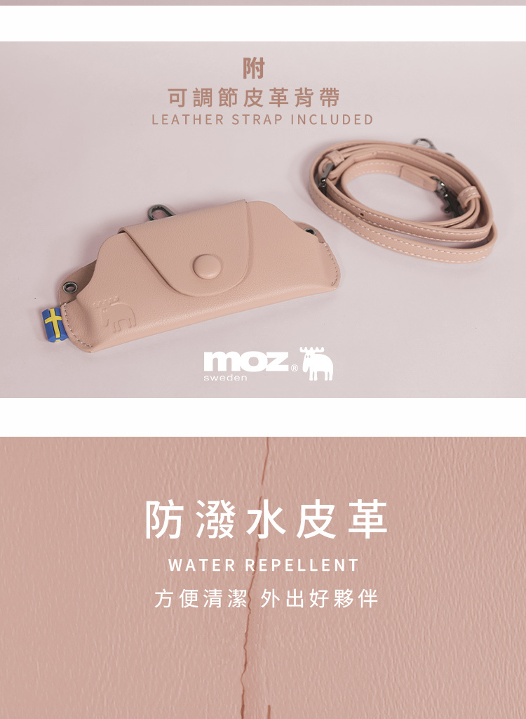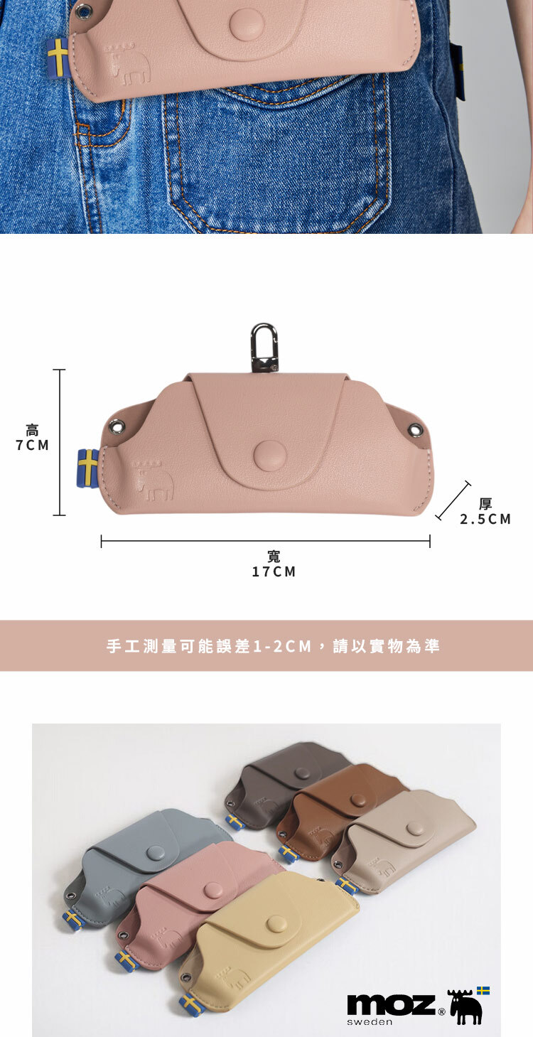 moz瑞典 駝鹿 防潑水 皮革 眼鏡包(霧粉)
