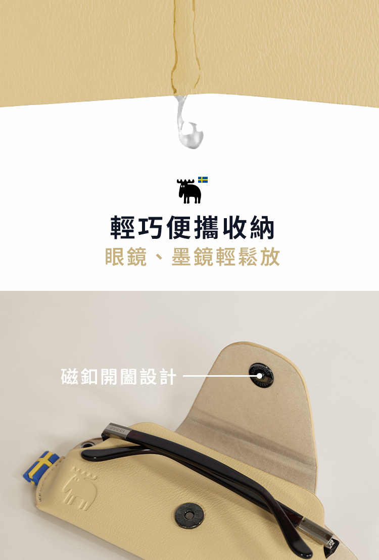 moz瑞典 駝鹿 防潑水 皮革 眼鏡包(嫩黃)