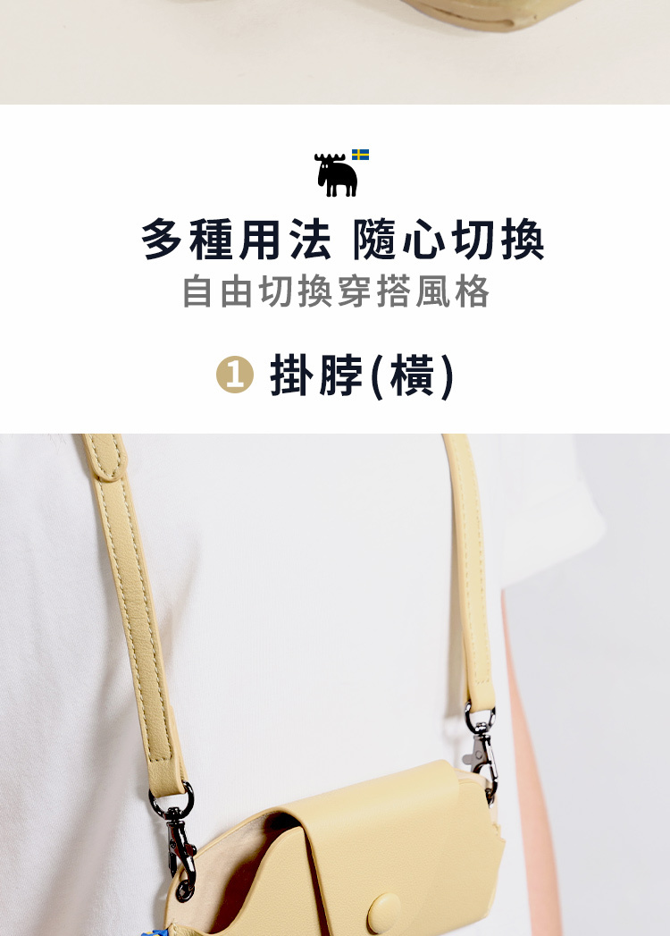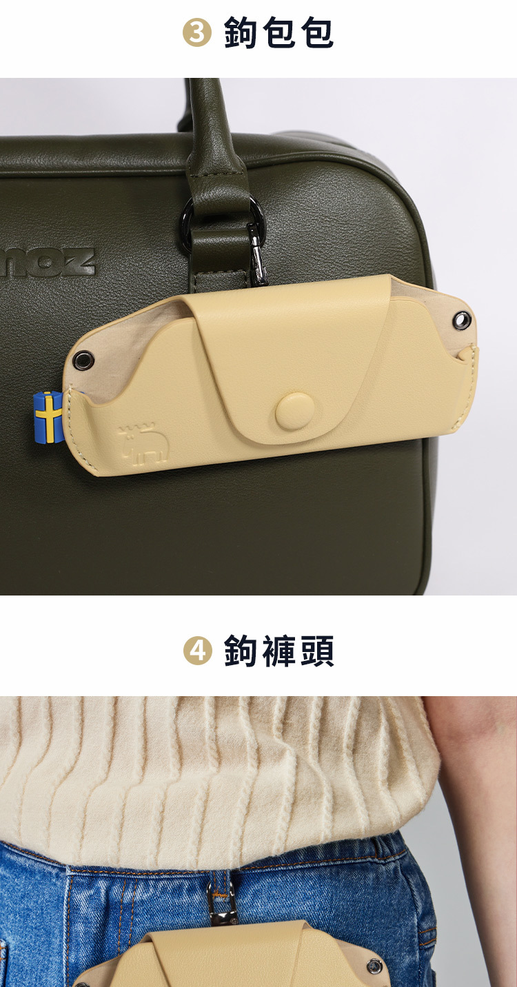 A:除了放眼鏡,也能作為隨身小物收納袋。可用金屬掛勾掛在包包上,或搭配背帶,出門攜帶更便利。