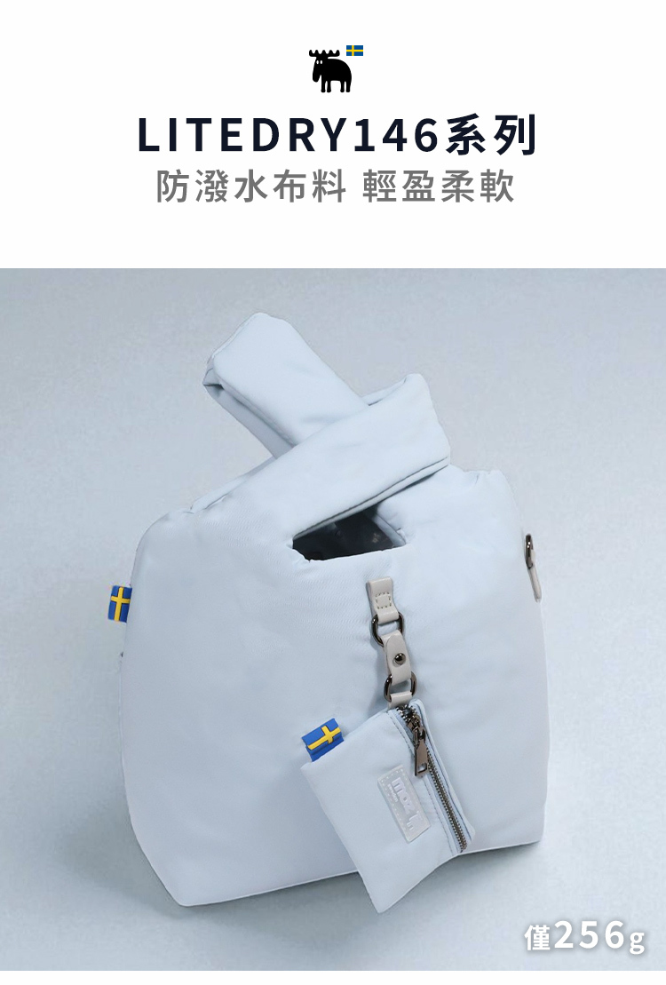 本產品採用防潑水聚酯纖維布料,可減少日常潑濺水分的滲入,維持包體乾爽。