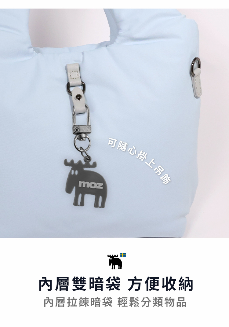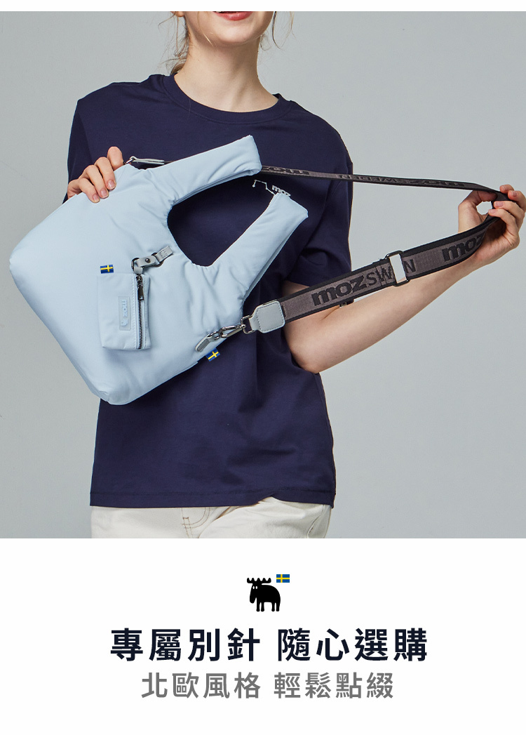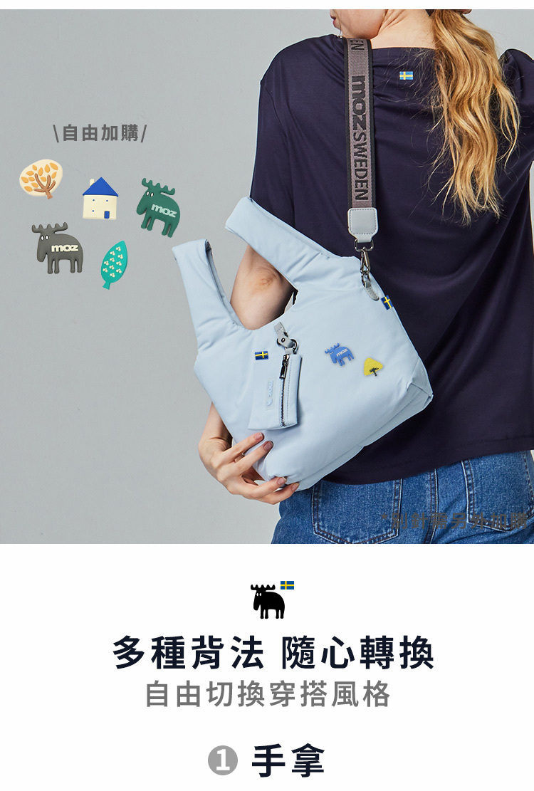 | A:moz 菜籃包是一款結合北歐設計感與日常實用性的輕便包款,外型靈感來自經典購物袋,搭配立體弧形提把與多隔層收納設計,外出、上班或購物都實用有型。 |