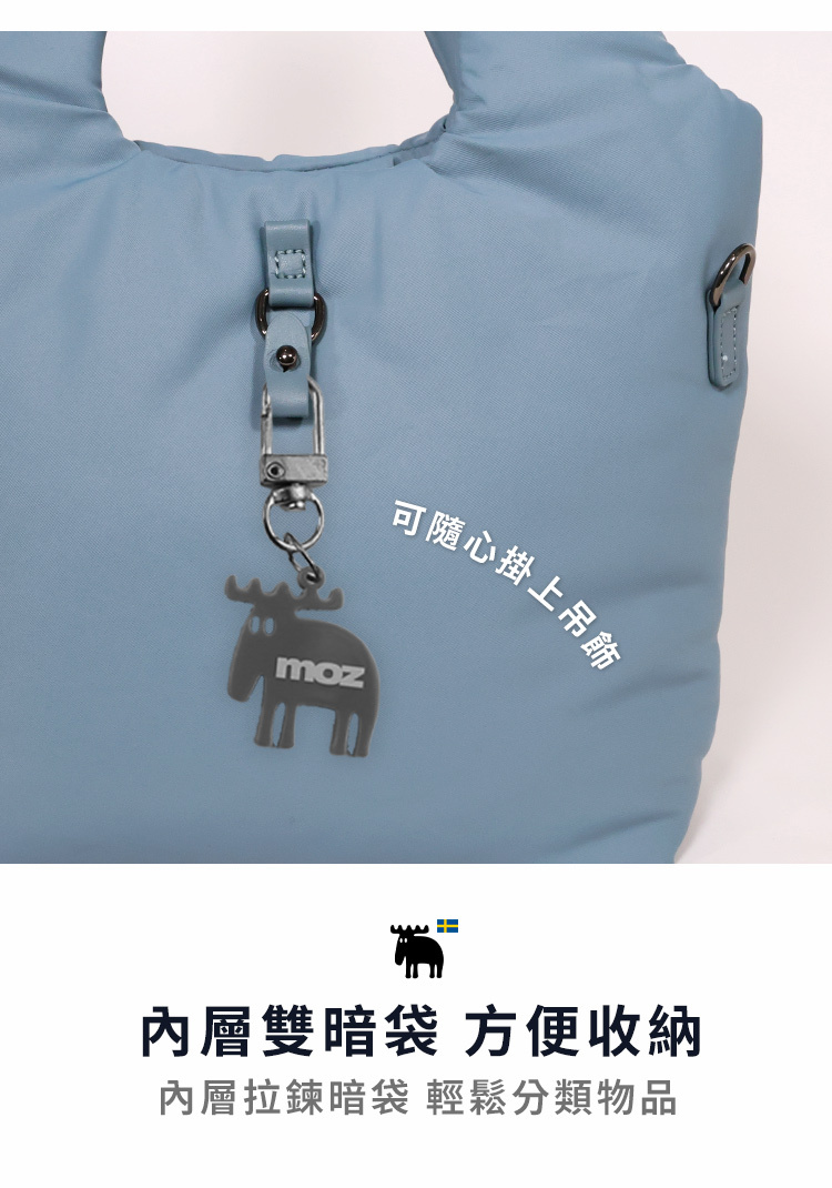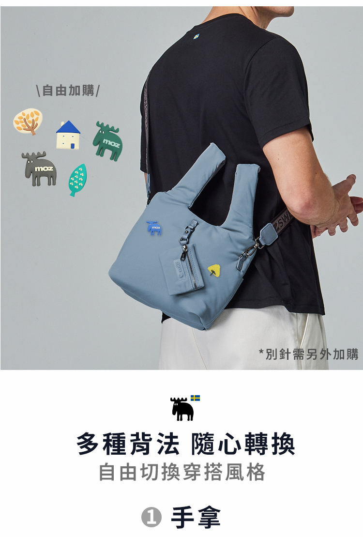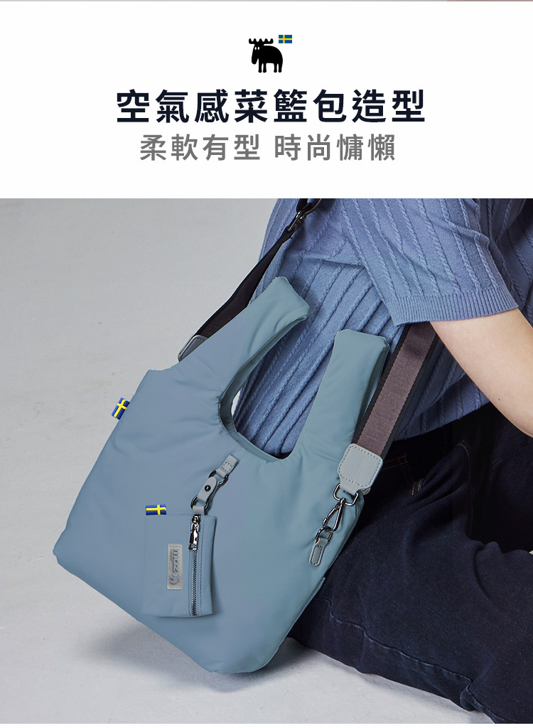 | A:moz 菜籃包是一款結合北歐設計感與日常實用性的輕便包款,外型靈感來自經典購物袋,搭配立體弧形提把與多隔層收納設計,外出、上班或購物都實用有型。 |