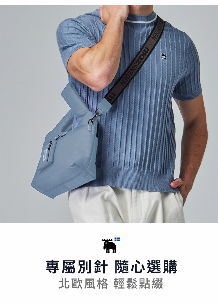 可拆式斜背帶搭配品牌LOGO織紋,穿搭更有個性層次