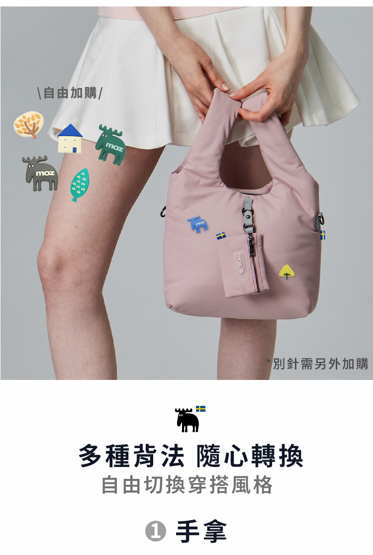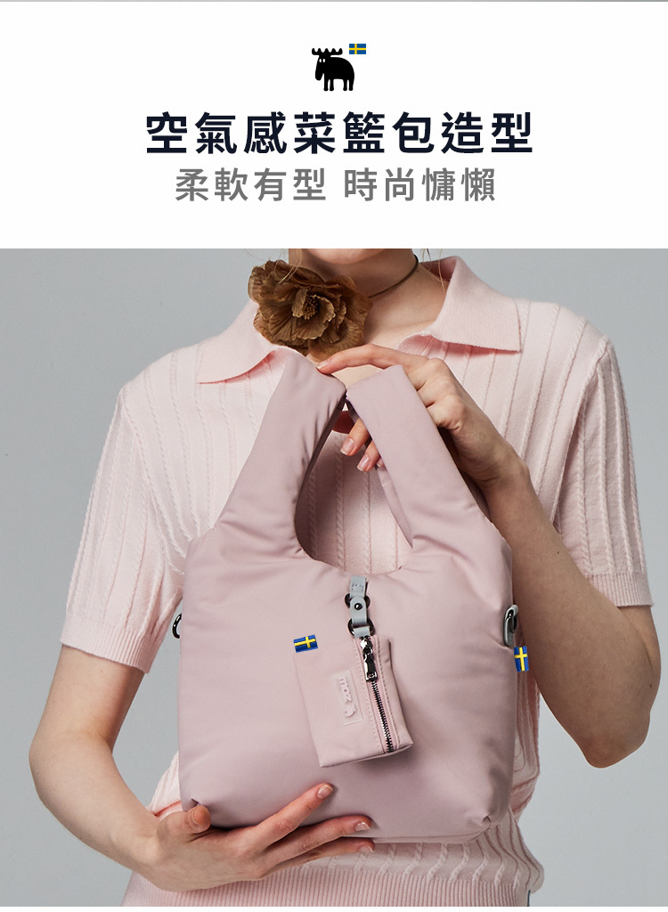 moz瑞典 駝鹿 雲朵 菜籃包(藕霧粉)M