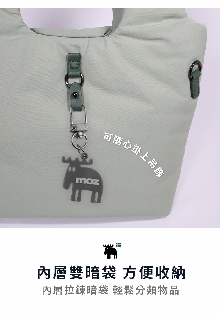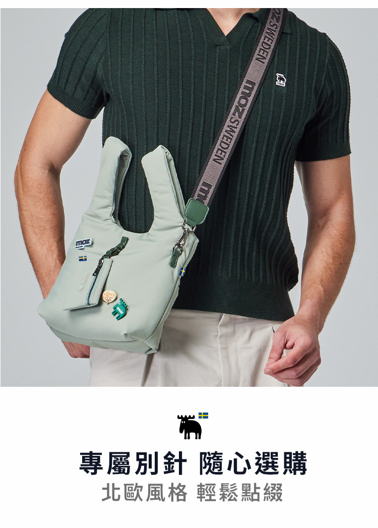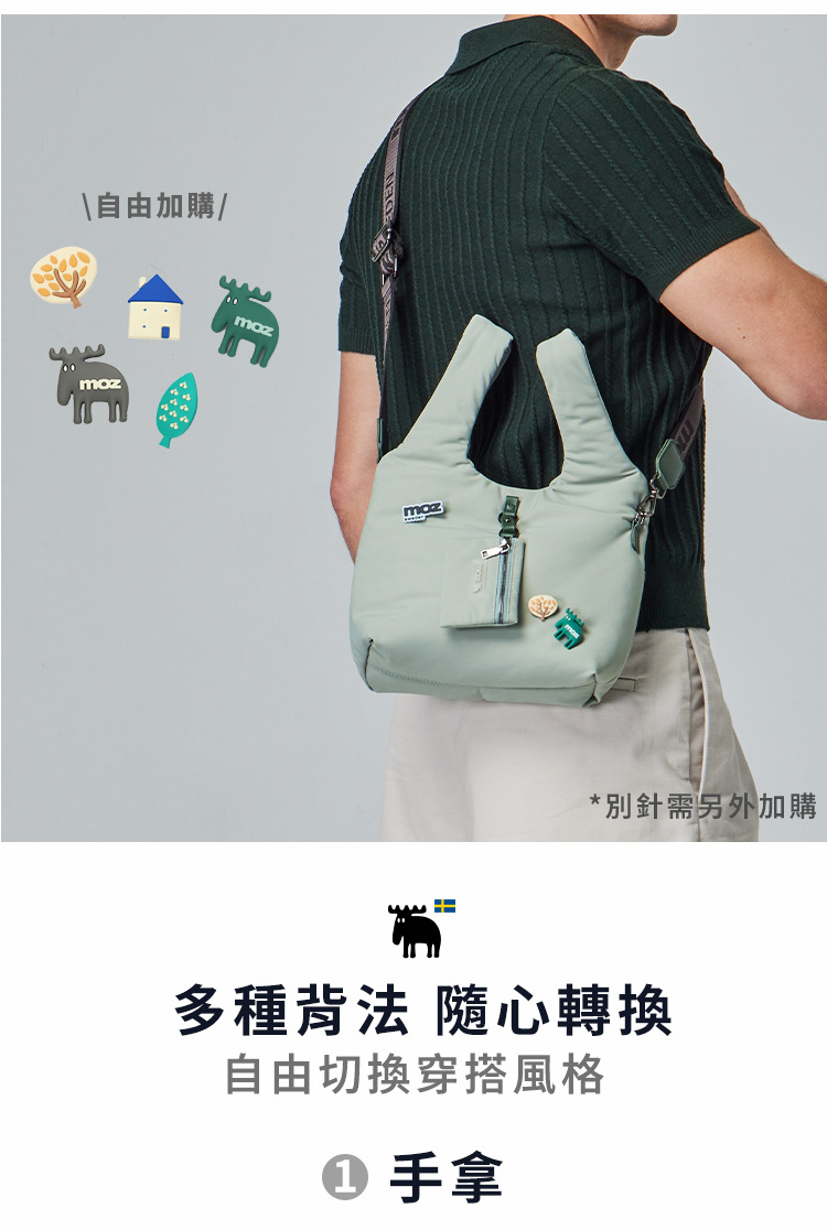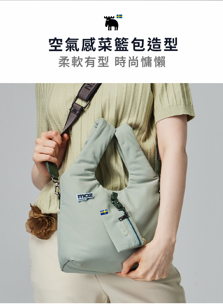 | A:moz 菜籃包是一款結合北歐設計感與日常實用性的輕便包款,外型靈感來自經典購物袋,搭配立體弧形提把與多隔層收納設計,外出、上班或購物都實用有型。 |