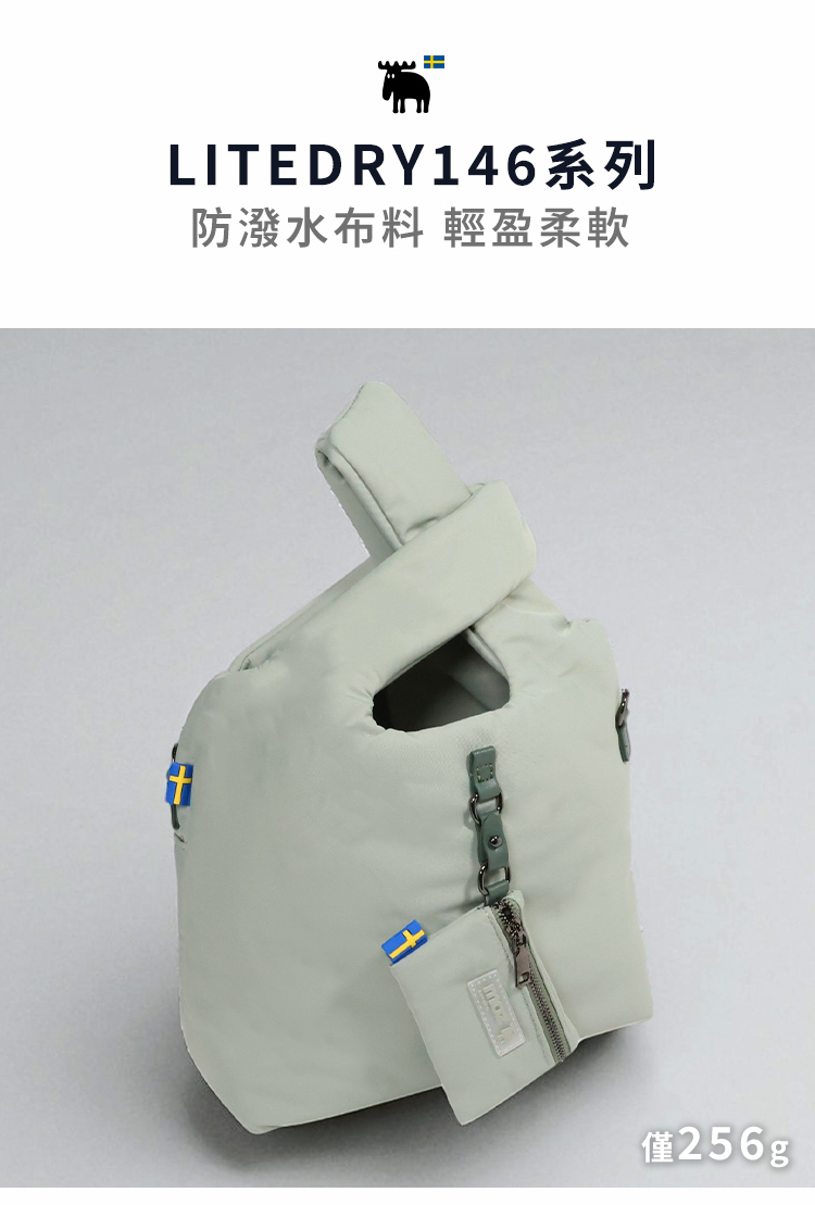 本產品採用防潑水聚酯纖維布料,可減少日常潑濺水分的滲入,維持包體乾爽。