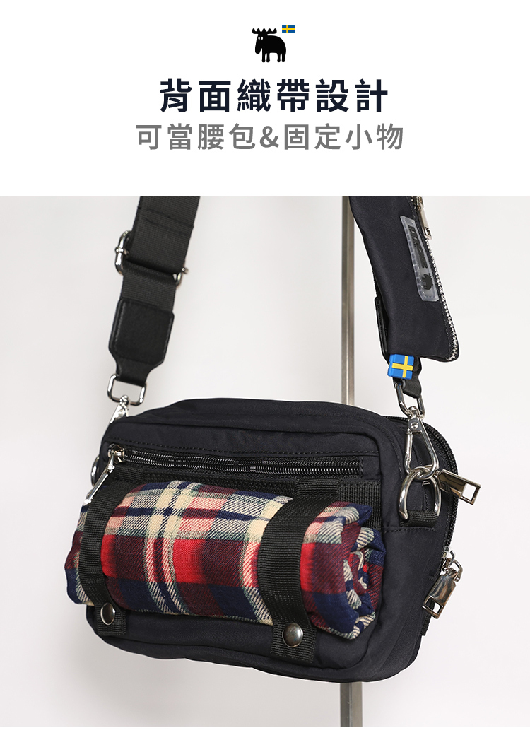 可拆式斜背帶搭配品牌LOGO織紋,穿搭更有個性層次