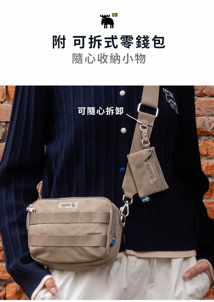 可拆式斜背帶搭配品牌LOGO織紋,穿搭更有個性層次