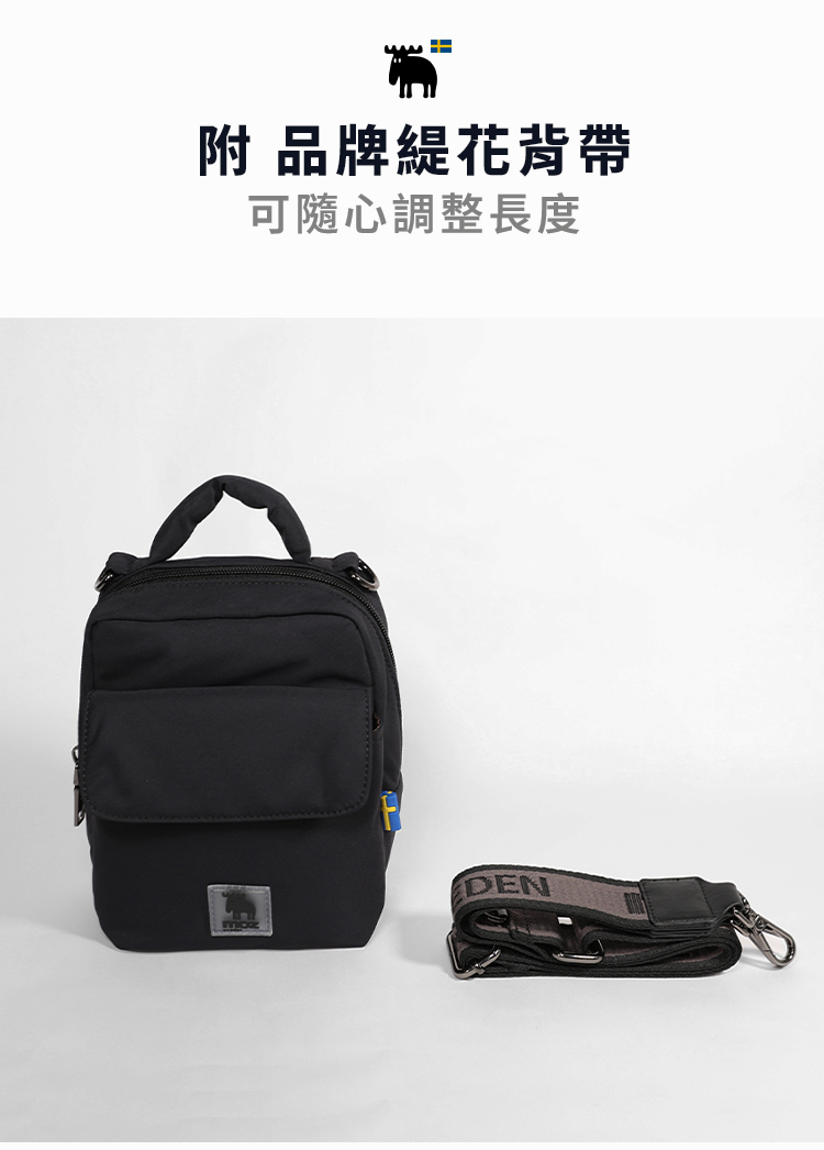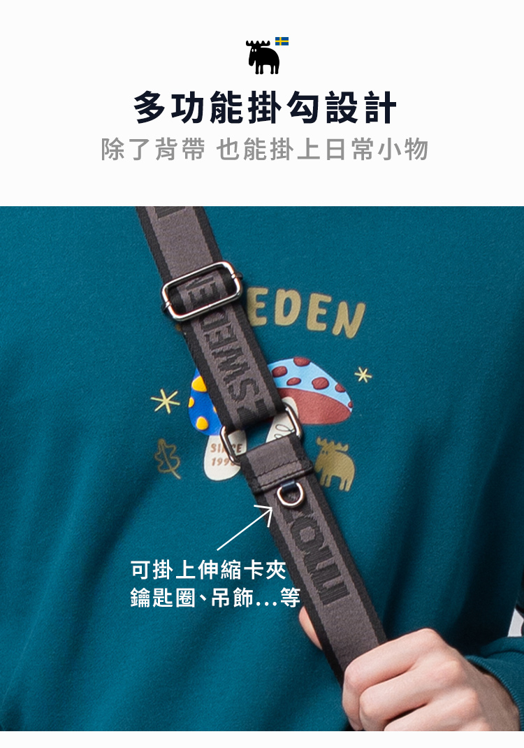 可拆式斜背帶搭配品牌LOGO織紋,穿搭更有個性層次