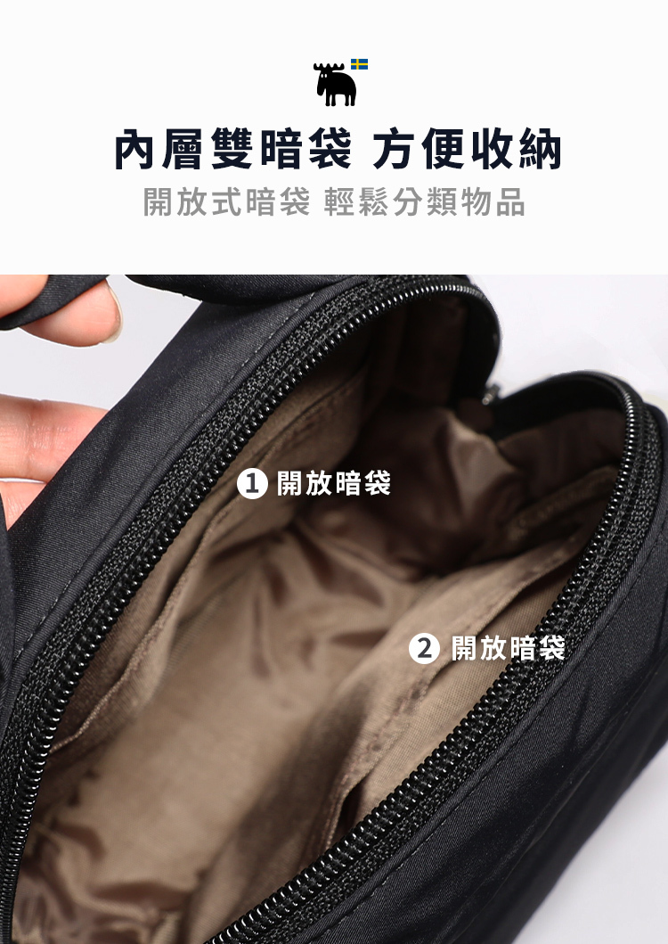 內層拉鍊暗袋保護貴重物品,方便又安全