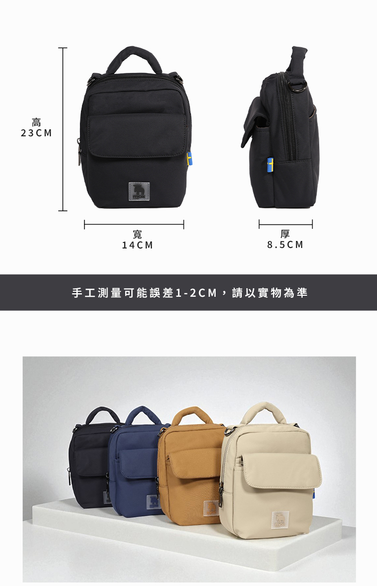 A:包身小巧卻很能裝!可放入皮夾、手機、摺疊傘、鑰匙與日常隨身小物,外層還有雙口袋,分類收納更有條理。