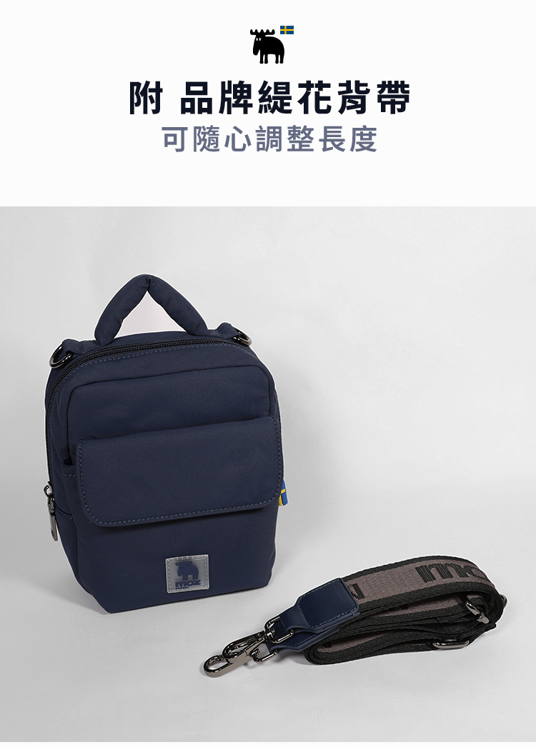 可拆式斜背帶搭配品牌LOGO織紋,穿搭更有個性層次