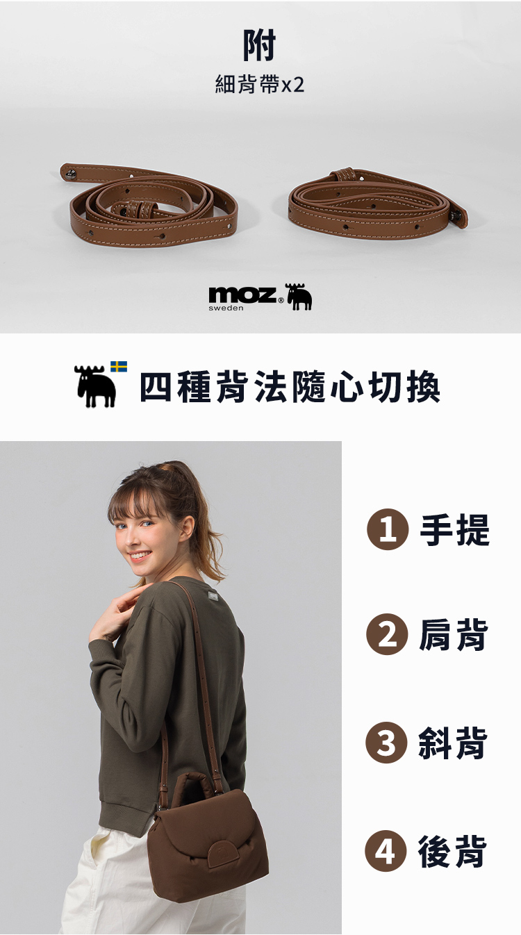 後背、斜背、肩背、手提,四種背法任你切換