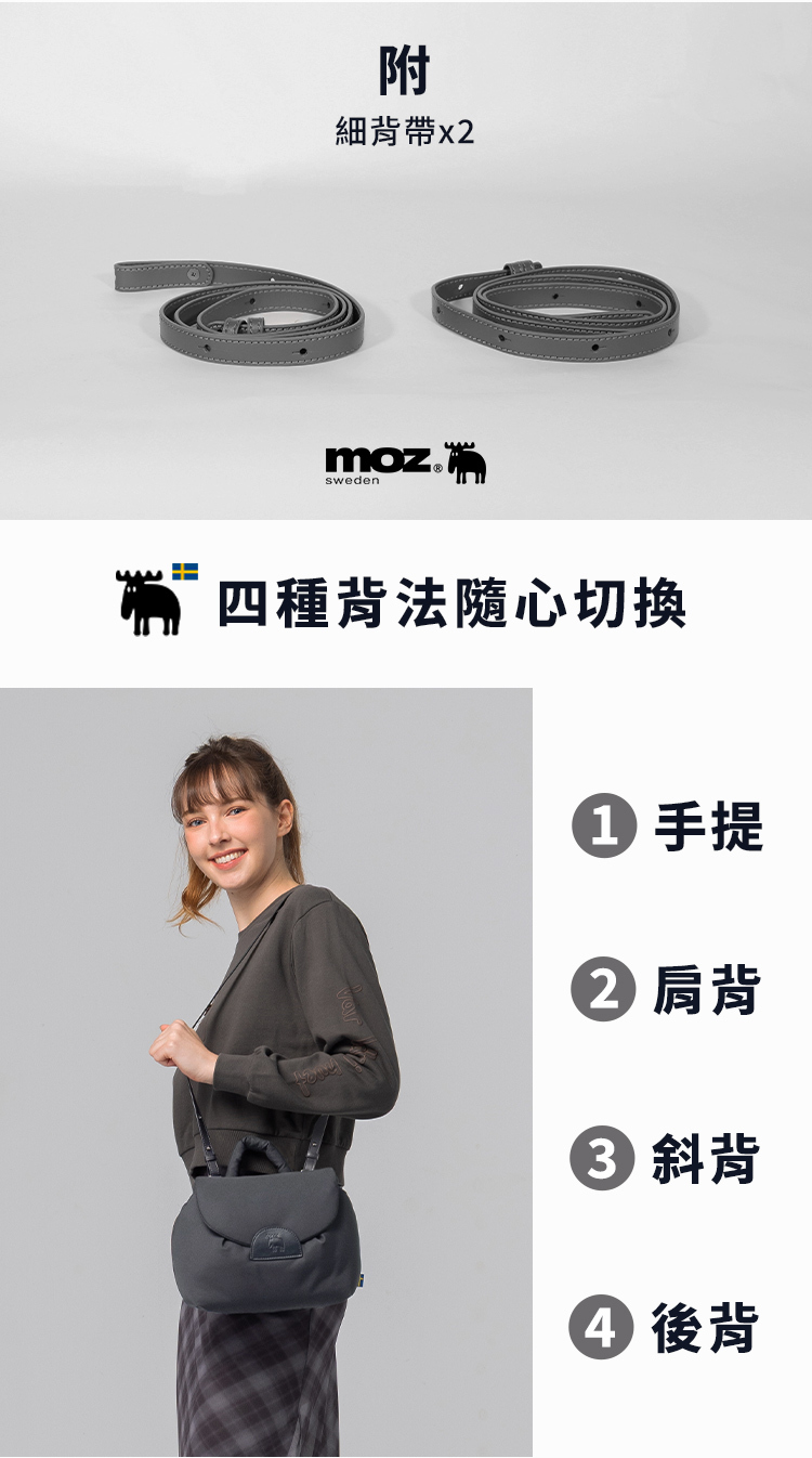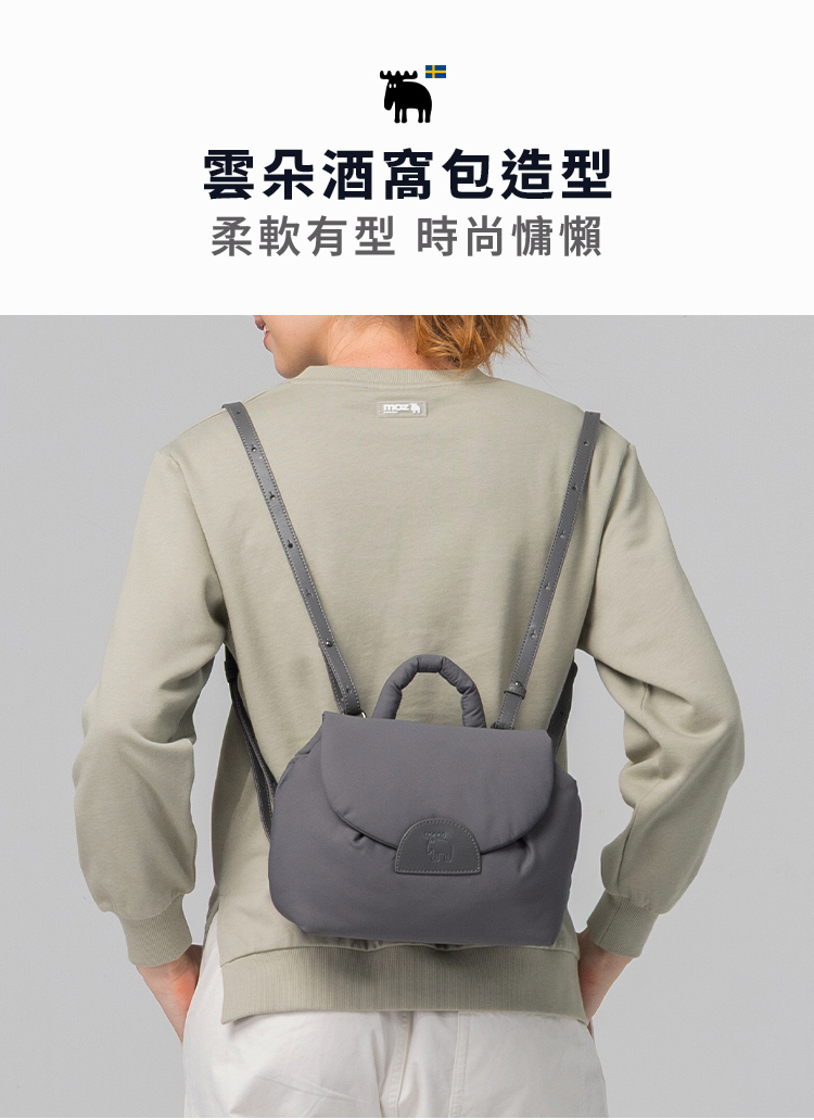 | A:moz 雲朵四用酒窩包是一款結合北歐簡約設計與多功能使用性的輕盈包款。包身圓潤俏皮、宛如微笑的酒窩造型,搭配柔軟布料與細膩車線,展現自然又有型的日常風格。 |
