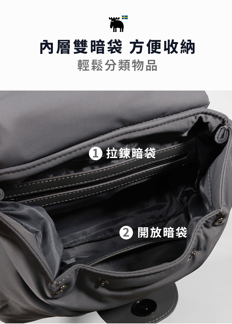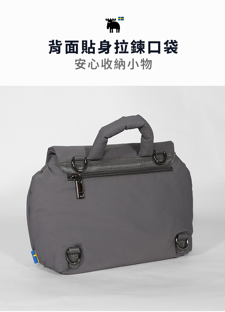 | A:雙背帶設計可輕鬆切換背法,無論後背、斜背、肩背或手提都能隨心變換。內層雙暗袋與外層拉鍊口袋設計,讓收納更有條理,小物取放也更方便。 |