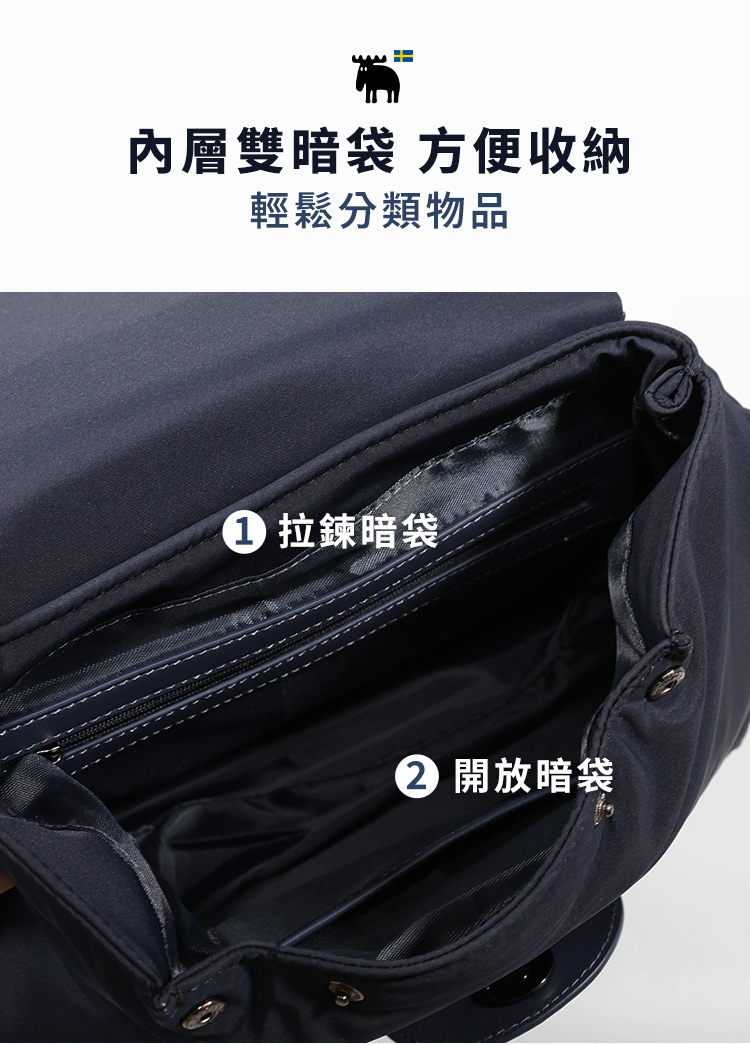A:雙背帶設計可輕鬆切換背法,無論後背、斜背、肩背或手提都能隨心變換。內層雙暗袋與外層拉鍊口袋設計,讓收納更有條理,小物取放也更方便。