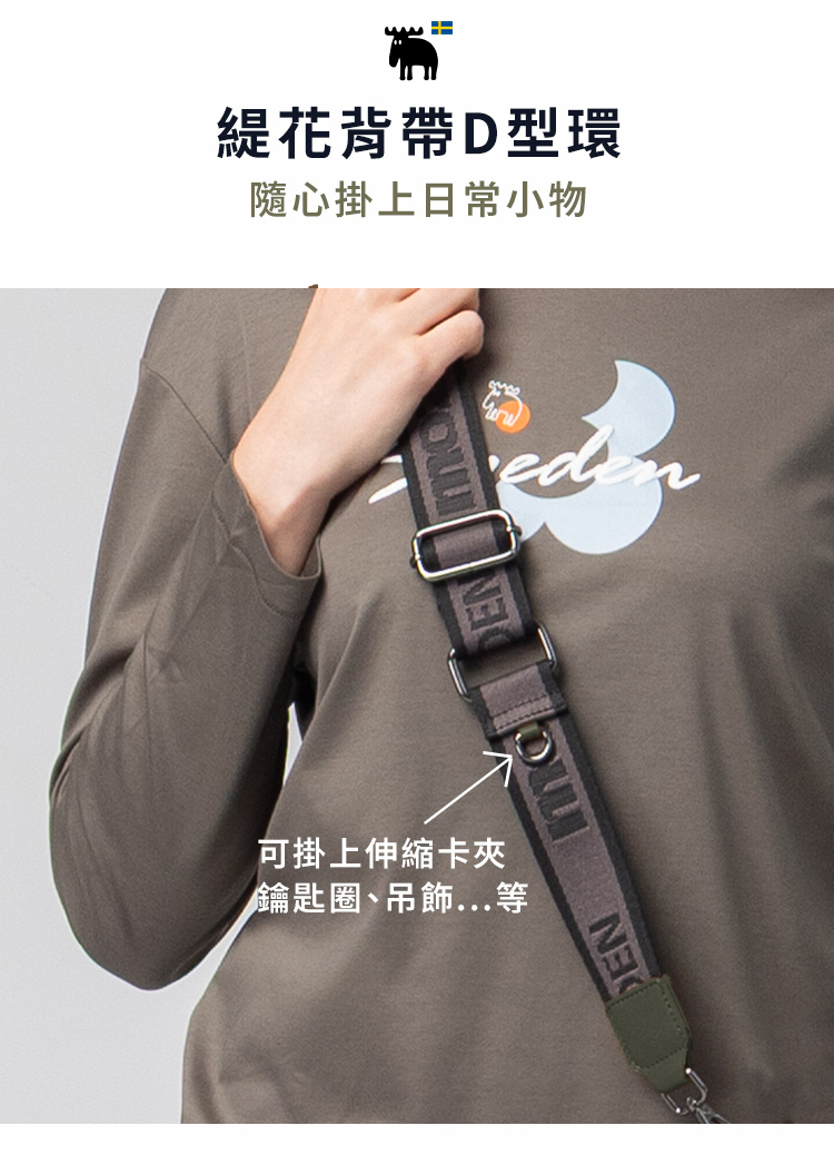 可拆式斜背帶搭配品牌LOGO織紋,穿搭更有個性層次
