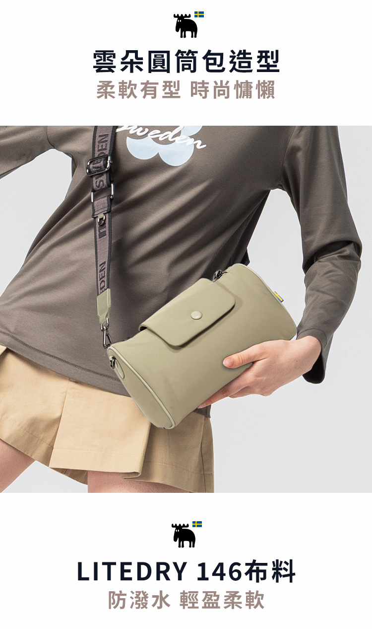 瑞典雲朵包系列|防潑水 雲朵 圓筒包(卡其綠)M