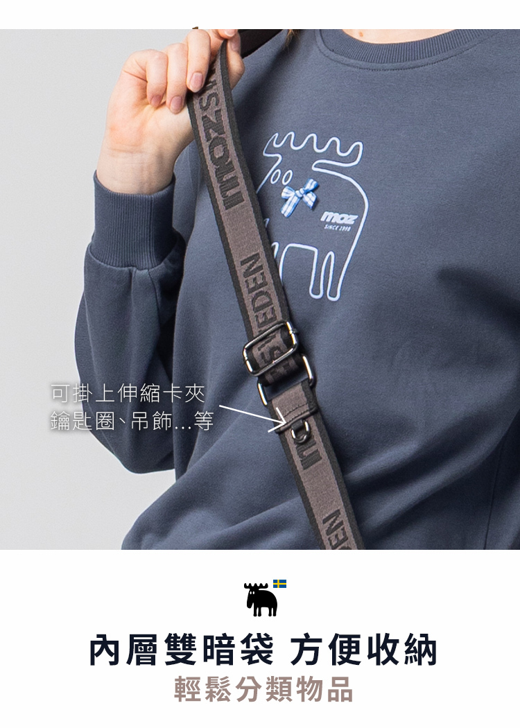 可拆式斜背帶搭配品牌LOGO織紋,穿搭更有個性層次