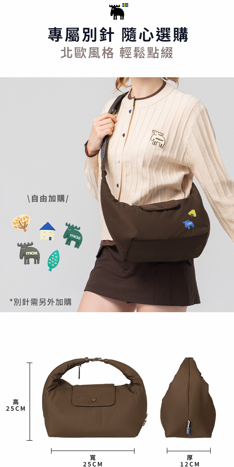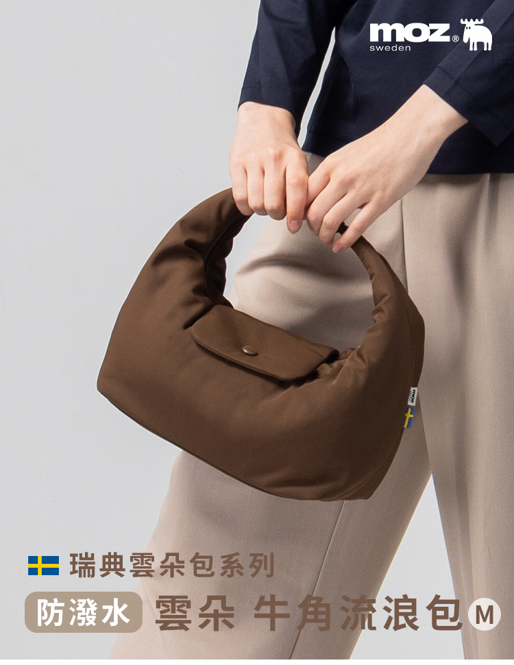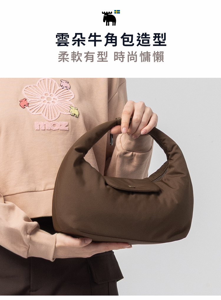 | A:moz 雲朵牛角包是一款結合北歐簡約風格與多種背法的輕量包款。包身線條圓潤柔和,搭配可變化的背帶設計,能肩背、斜背或手提。將提把扣起後,外型自然呈現牛角輪廓,辨識度高又可愛。S、M 兩種尺寸,滿足不同日常使用需求。 |