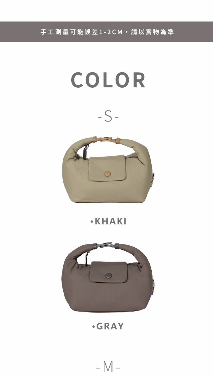 | A:S 號:包身小巧,適合日常輕裝出門,剛好放下手機、皮夾、鑰匙與少量個人物品,體積輕盈,適合喜歡精簡收納的人。 |