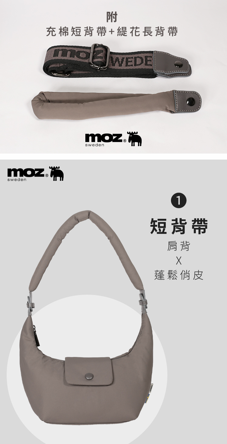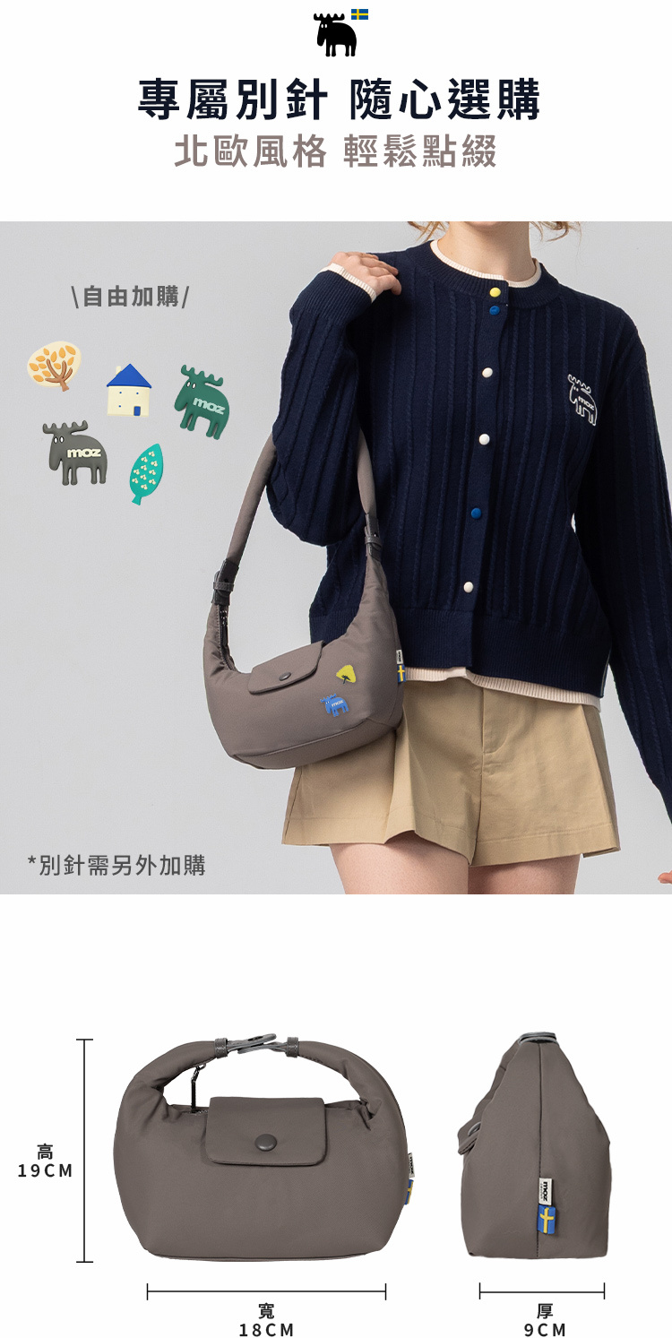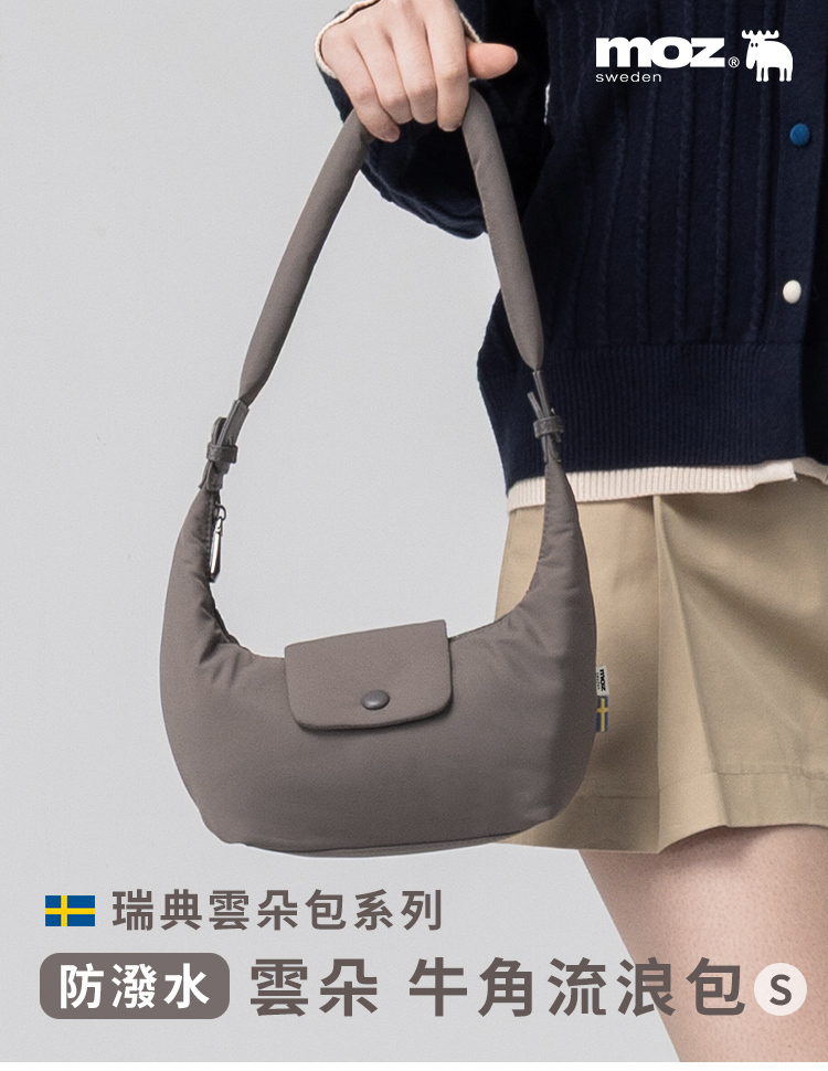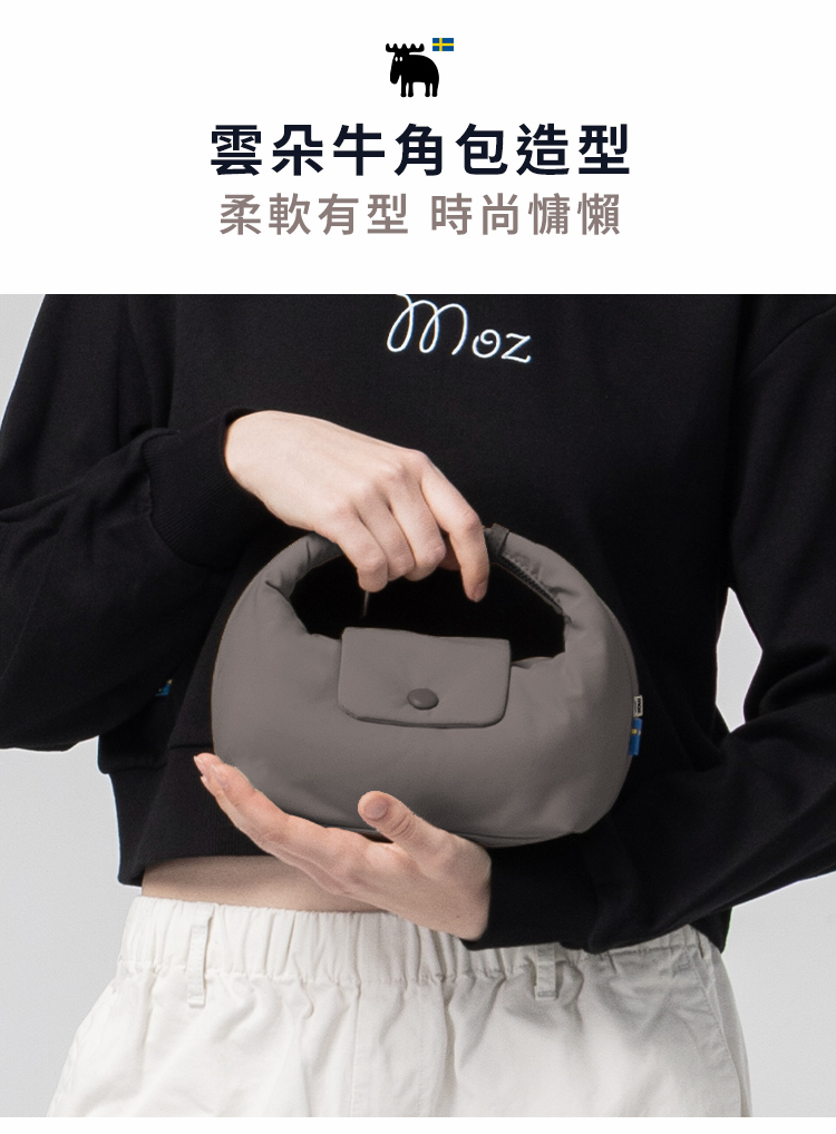 | A:moz 雲朵牛角包是一款結合北歐簡約風格與多種背法的輕量包款。包身線條圓潤柔和,搭配可變化的背帶設計,能肩背、斜背或手提。將提把扣起後,外型自然呈現牛角輪廓,辨識度高又可愛。S、M 兩種尺寸,滿足不同日常使用需求。 |