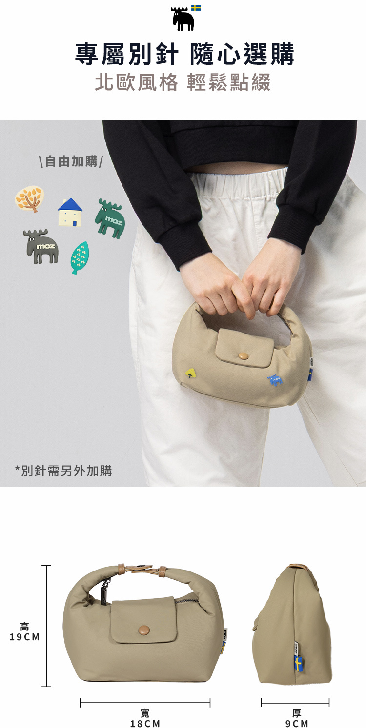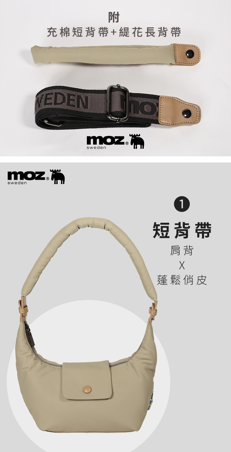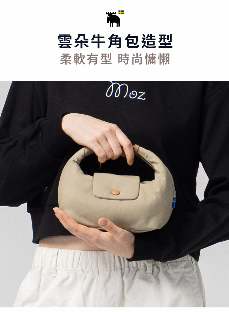 Amoz 雲朵牛角包是一款結合北歐簡約風格與多種背法的輕量包款。包身線條圓潤柔和,搭配可變化的背帶設計,能肩背、斜背或手提。將提把扣起後,外型自然呈現牛角輪廓,辨識度高又可愛。SM 兩種尺寸,滿足不同日常使用需求。