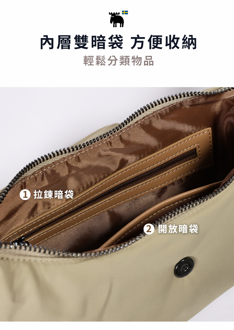 瑞典雲朵包系列|防潑水 雲朵 牛角流浪包(卡其)S