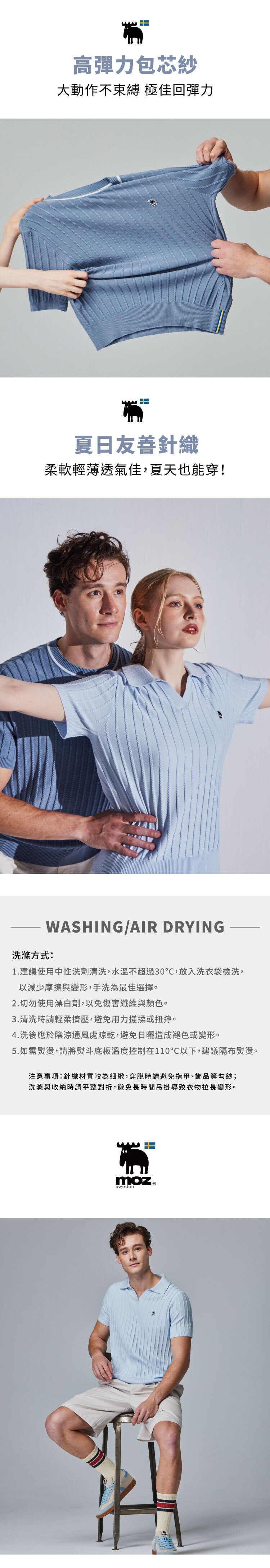 moz瑞典 駝鹿 親膚 POLO領 針織短T-水藍(亞洲版)男款