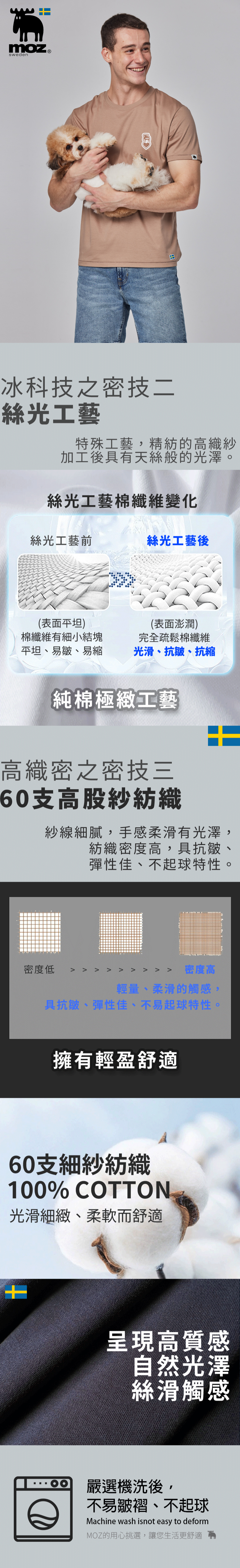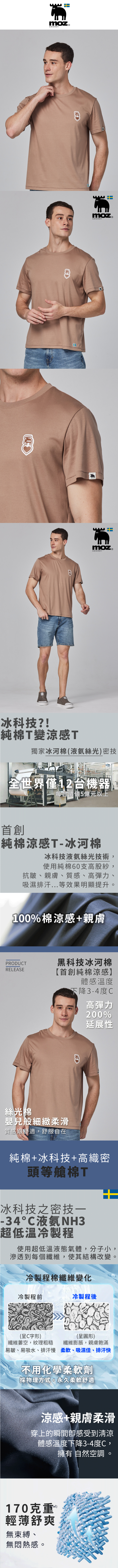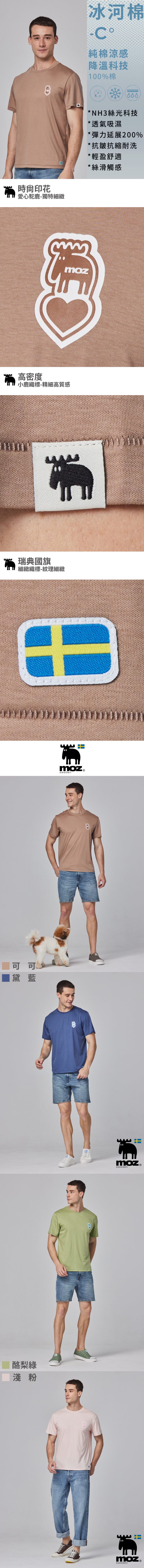❄️冰河棉 moz瑞典 愛心駝鹿 舒適 冰河棉 100%純棉 涼感彈力T恤-可可(亞洲版)男款