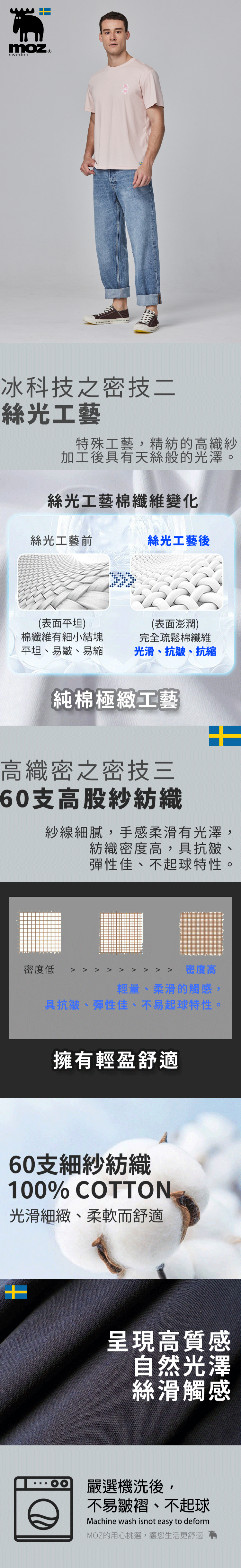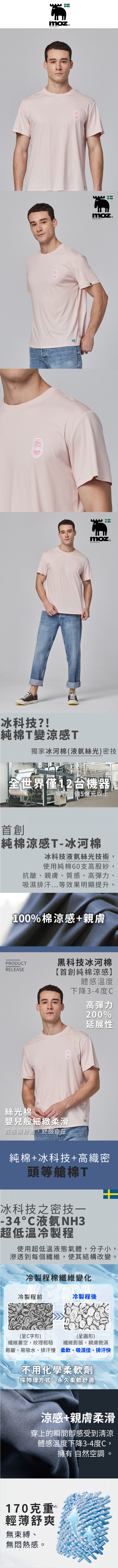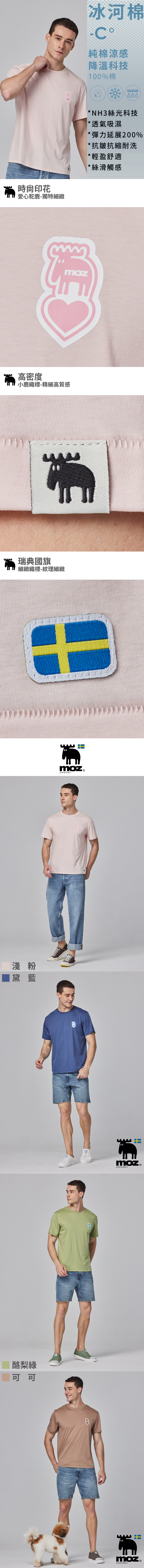 ❄️冰河棉 moz瑞典 愛心駝鹿 舒適 冰河棉 100%純棉 涼感彈力T恤-淺粉(亞洲版)男款