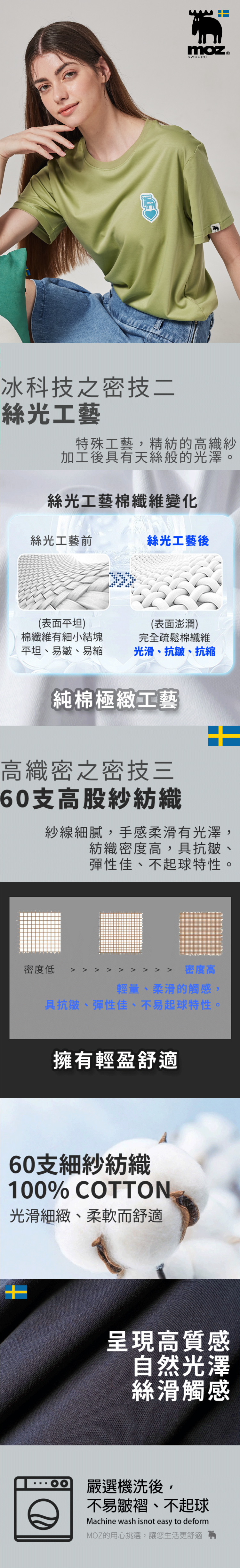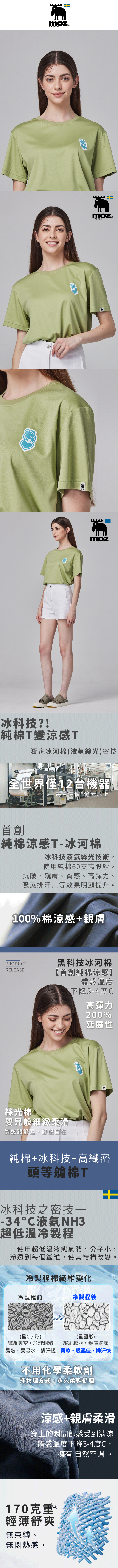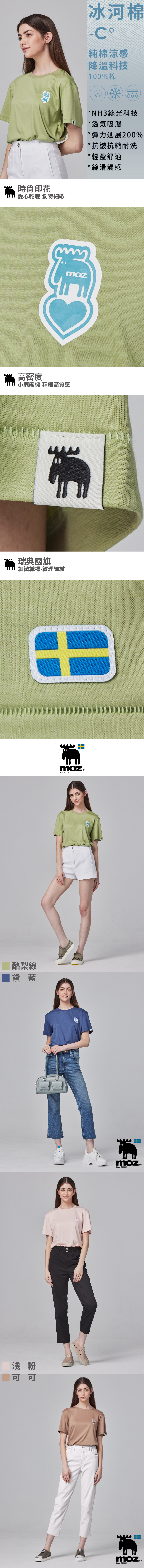 ❄️冰河棉 moz瑞典 愛心駝鹿 舒適 冰河棉 100%純棉 涼感彈力T恤-酪梨綠(亞洲版)女款