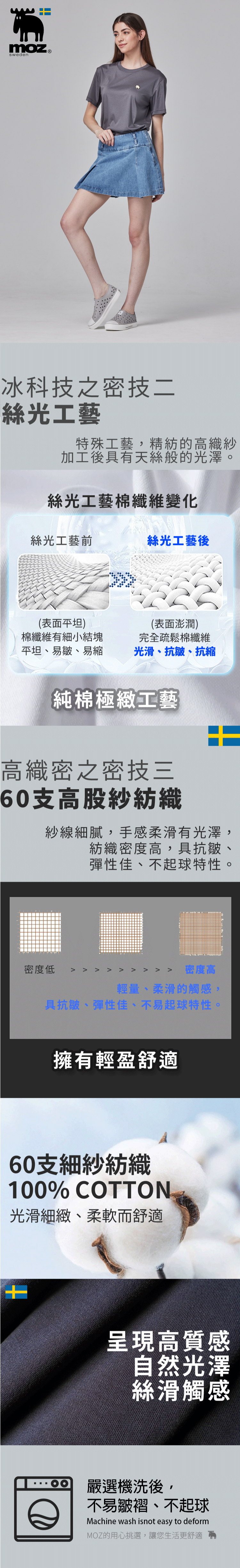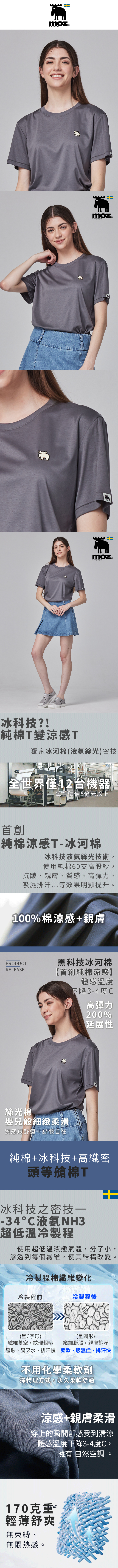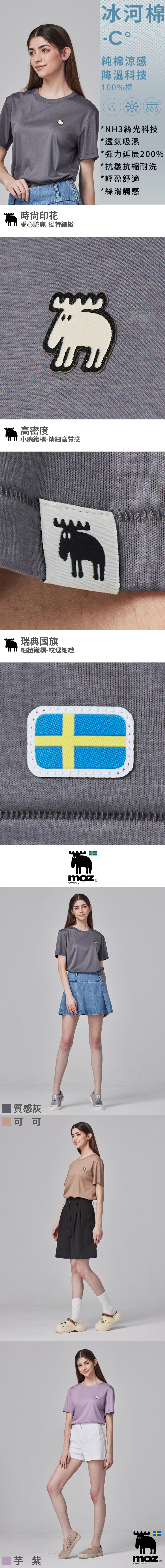 ❄️冰河棉 moz瑞典 刺繡駝鹿 舒適 冰河棉 100%純棉 涼感 彈力T恤 -質感灰(亞洲版)女款