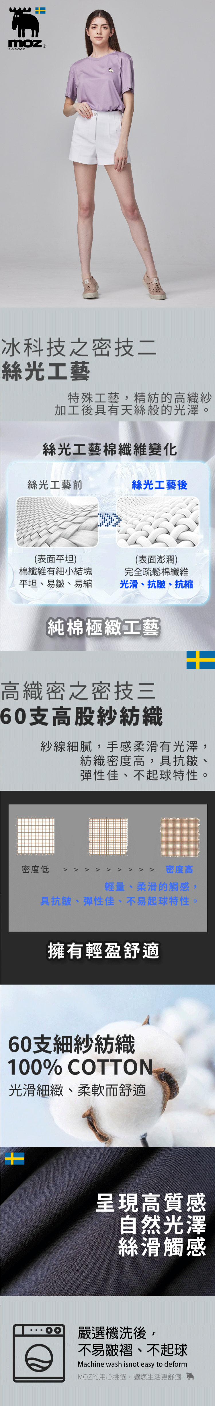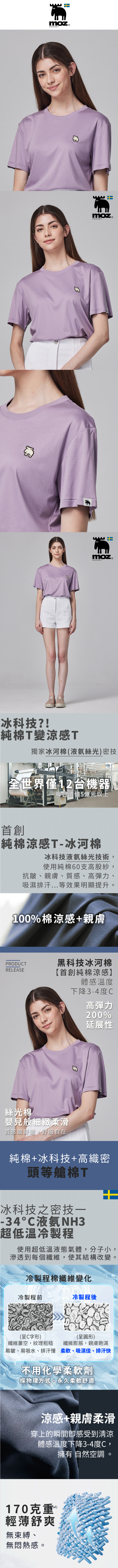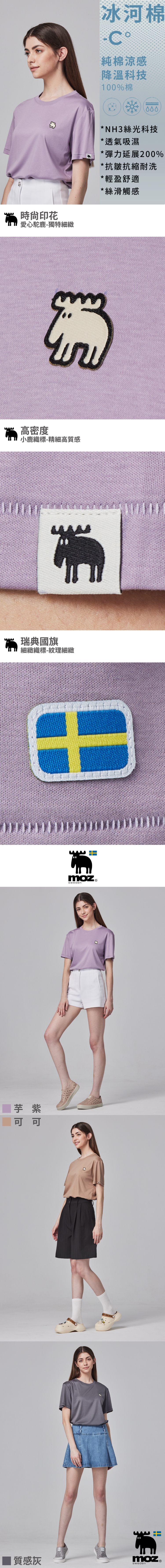 ❄️冰河棉 moz瑞典 刺繡駝鹿 舒適 冰河棉 100%純棉 涼感 彈力T恤 -芋紫(亞洲版)女款