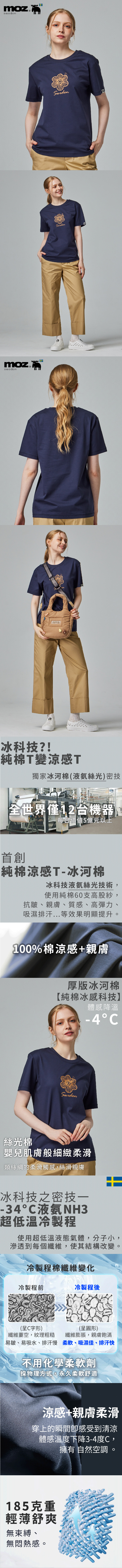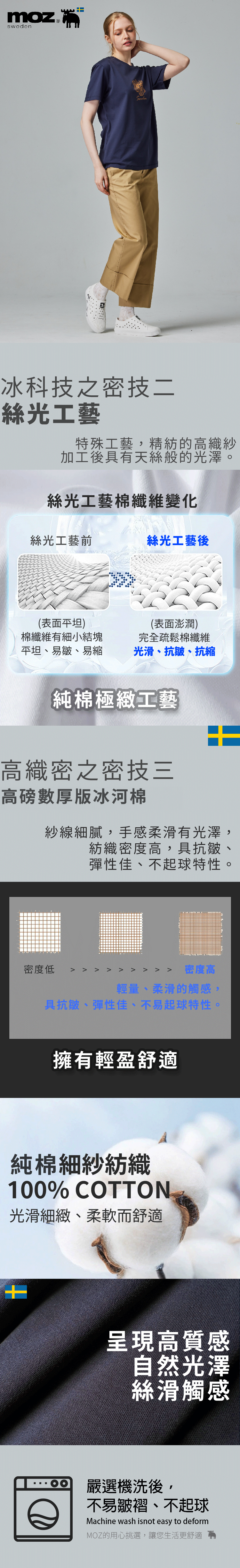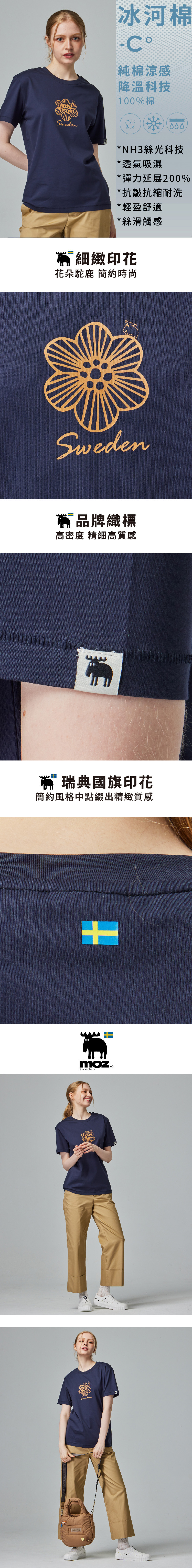 moz瑞典 春語駝鹿 冰河棉 100%純棉 涼感彈力厚版T恤-藏青(亞洲版)女款