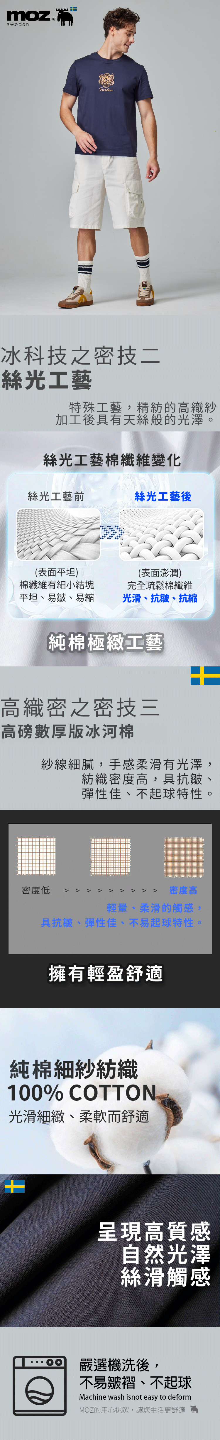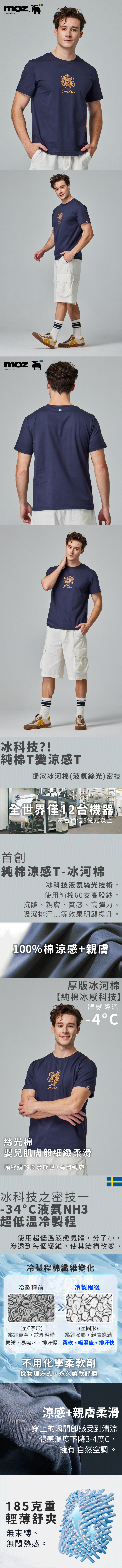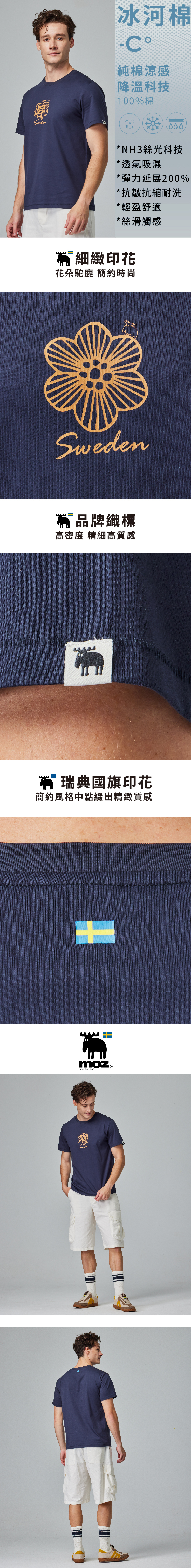 moz瑞典 春語駝鹿 冰河棉 100%純棉 涼感彈力厚版T恤-藏青(亞洲版)男款