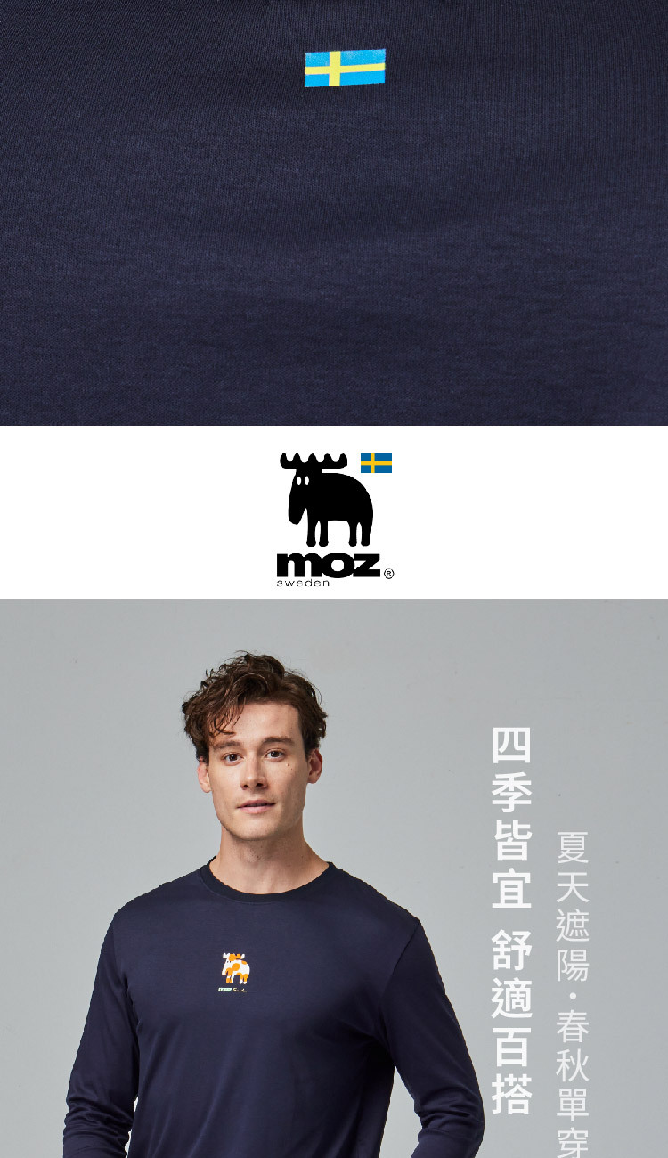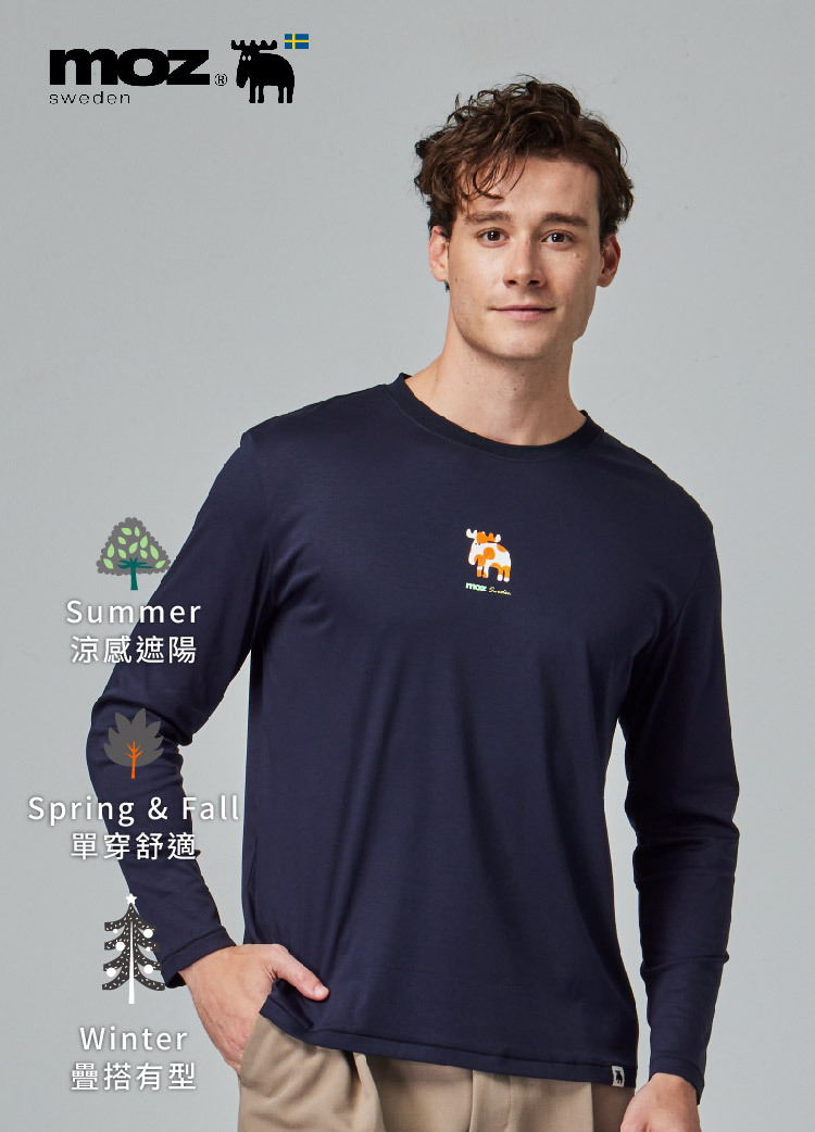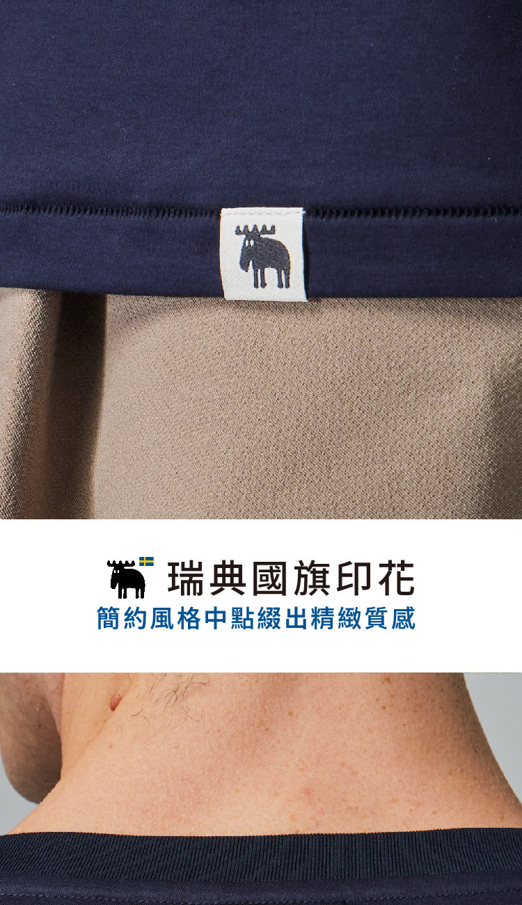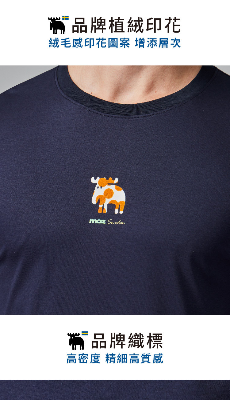 moz瑞典 植絨圓點駝鹿 冰河棉 100%純棉 涼感彈力四季T-藏青(亞洲版)男款
