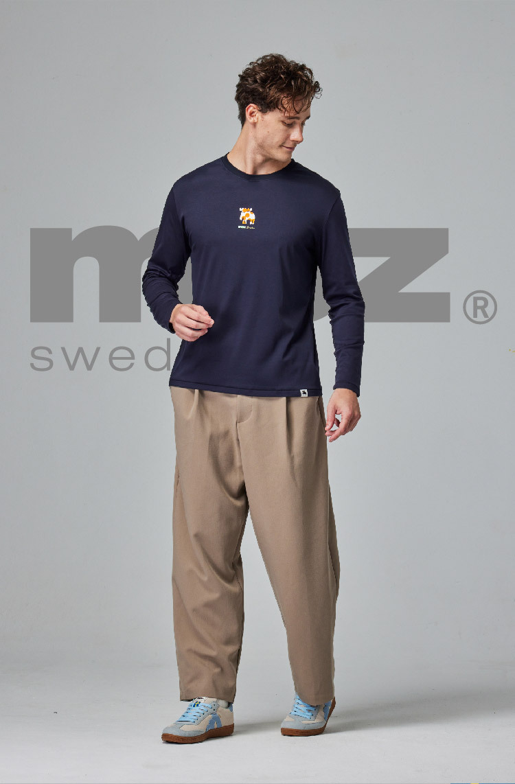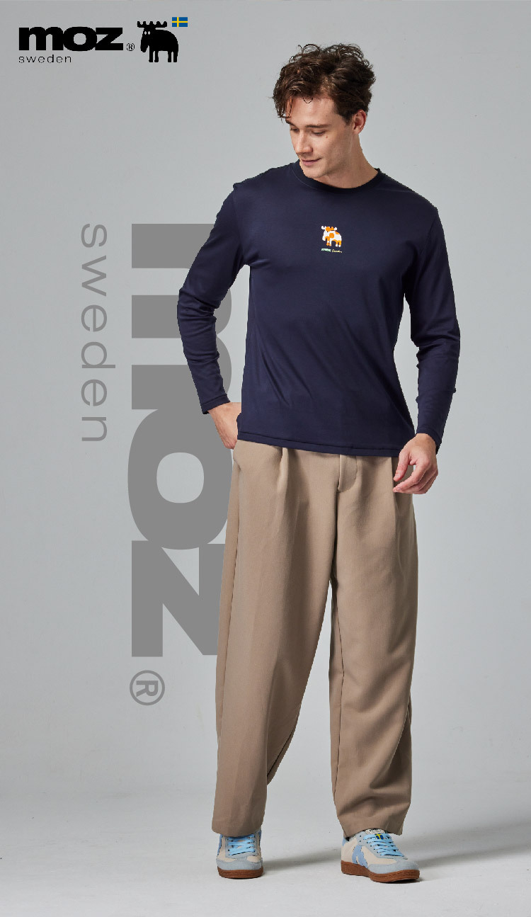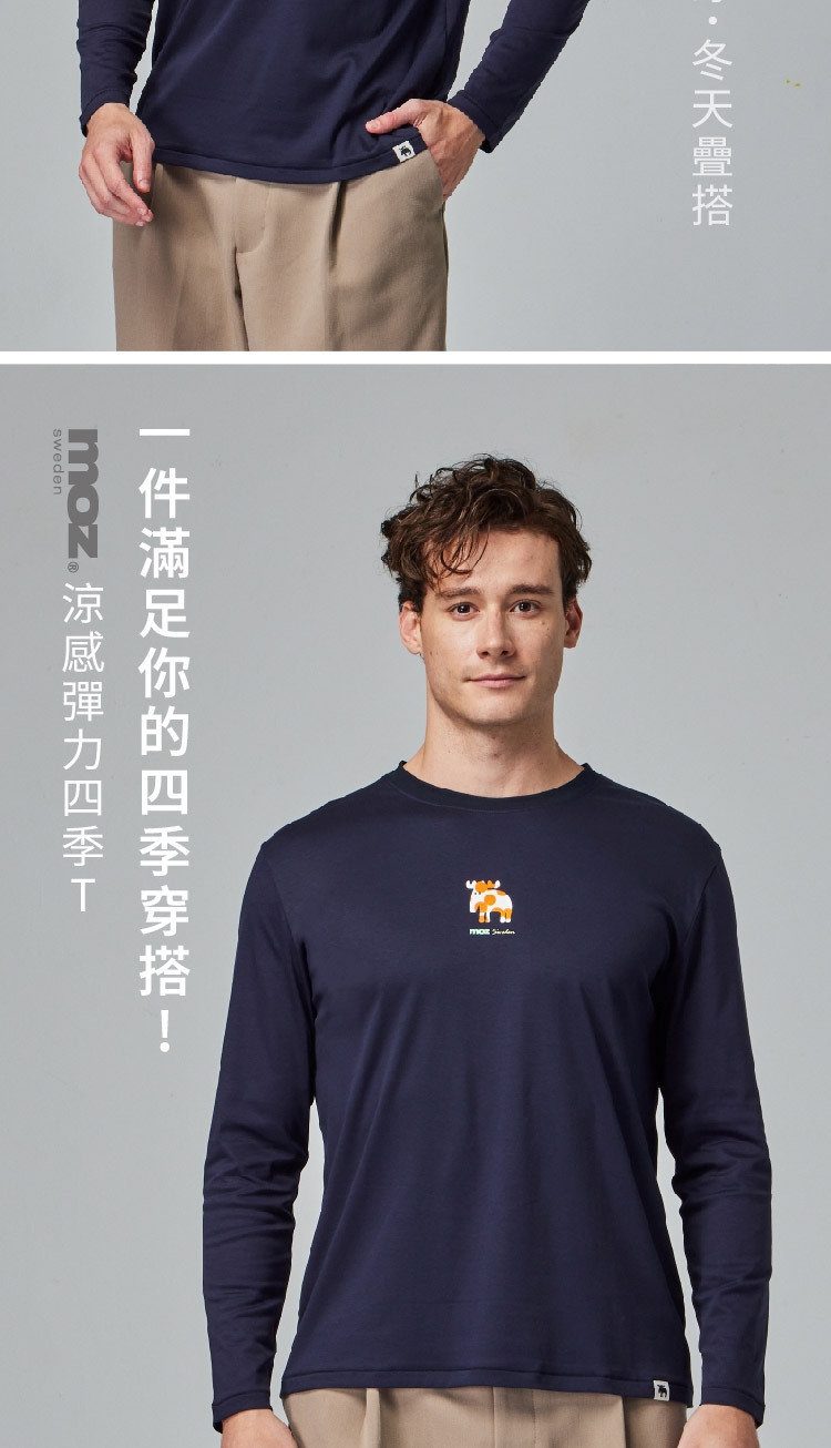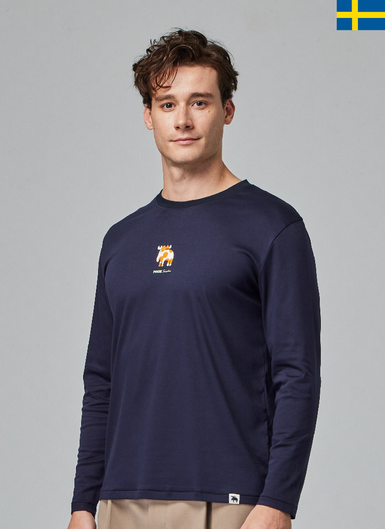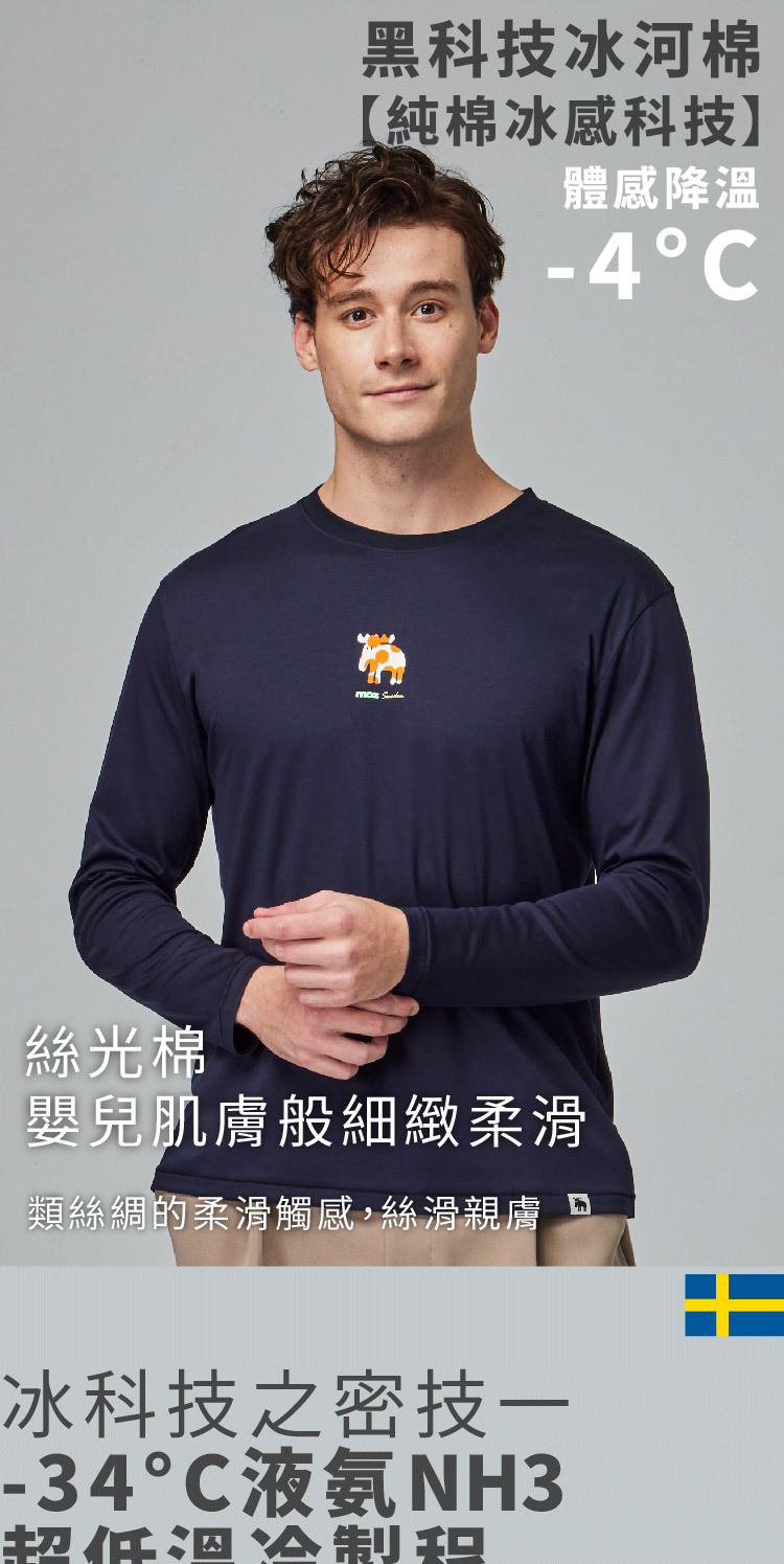 moz瑞典 植絨圓點駝鹿 冰河棉 100%純棉 涼感彈力四季T-藏青(亞洲版)男款