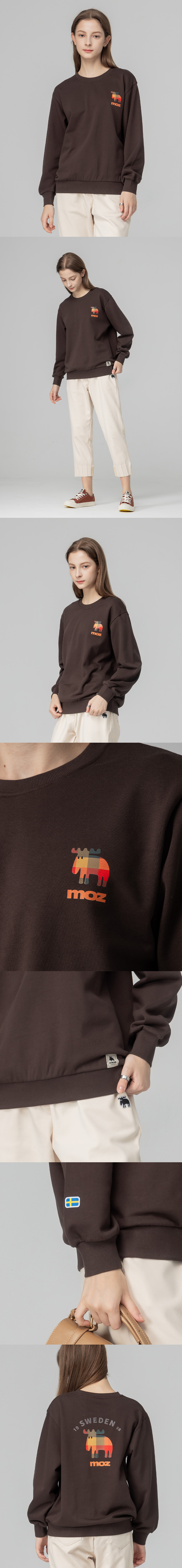 moz瑞典 格紋駝鹿 100%純棉 大學T -黑巧克力(亞洲版) 男女共款