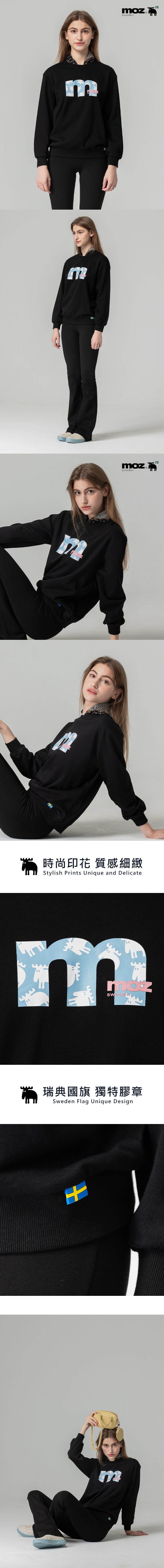 moz瑞典 M字駝鹿 100%純棉 大學T-黑(亞洲版) 女款