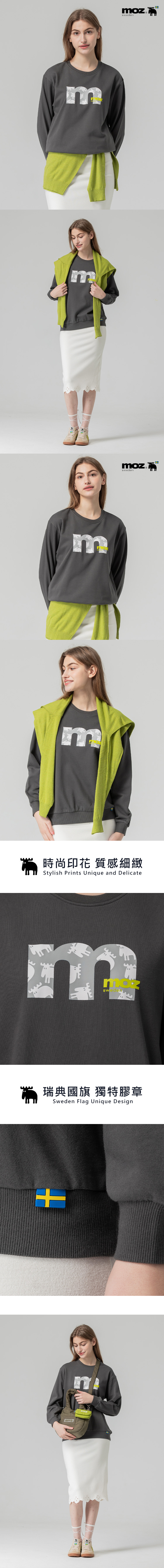 moz瑞典 M字駝鹿 100%純棉 大學T-炭灰(亞洲版) 女款