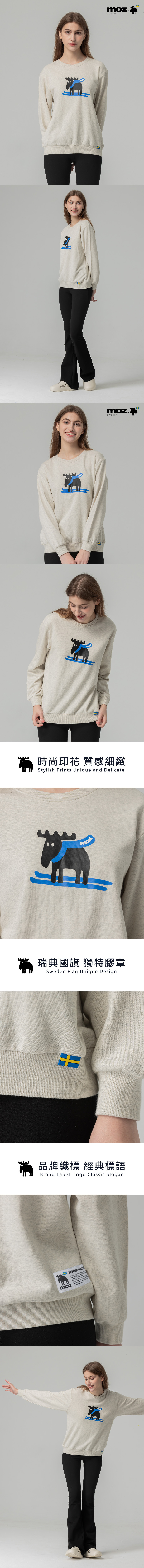 moz瑞典 雪橇駝鹿 100%純棉 大學T-麻花灰(亞洲版) 女款